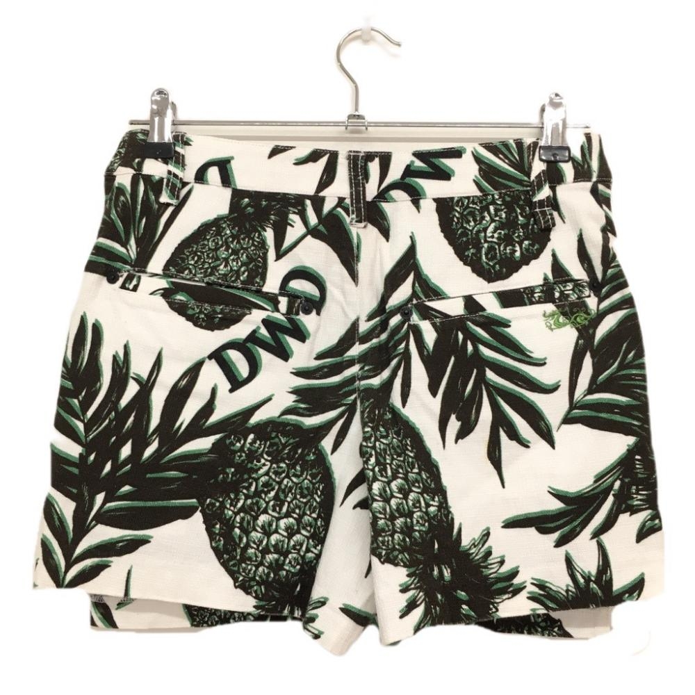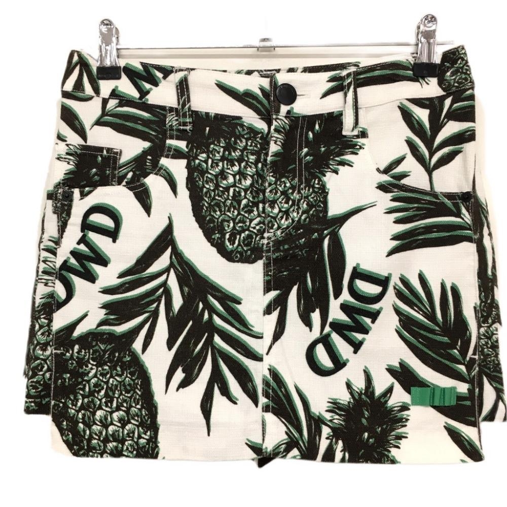 ダンスウィズドラゴン キュロットスカート 白×黒×グリーン パイナップル柄 リーフ柄 レディース 2(M) ゴルフウェア Dance With Dragon