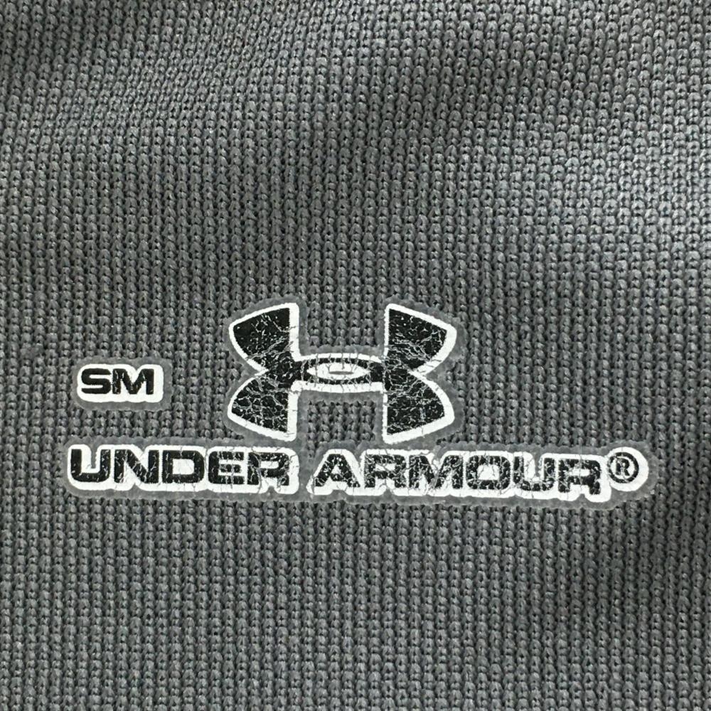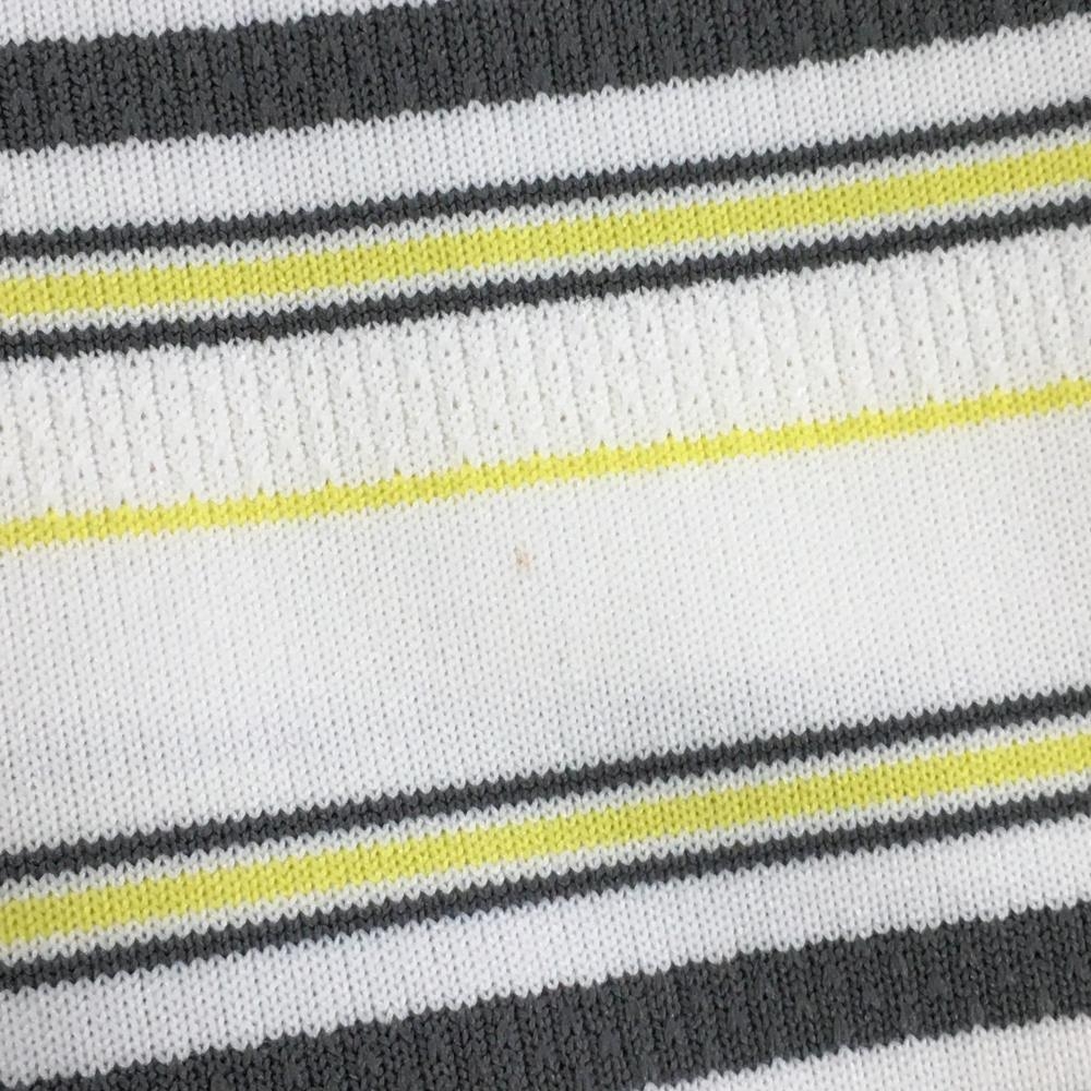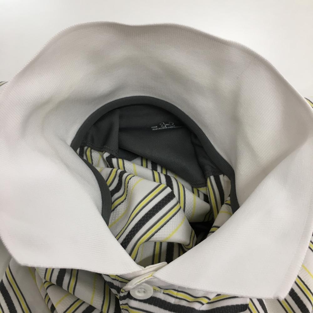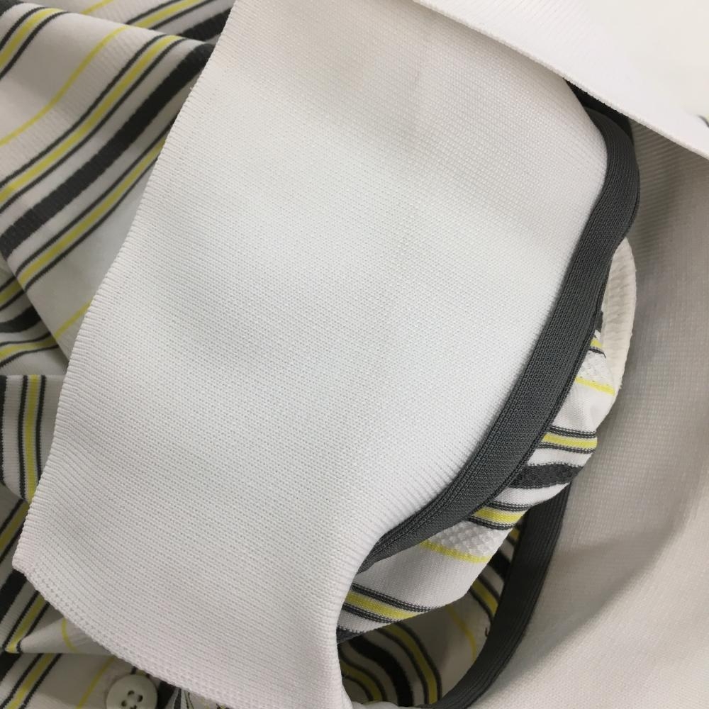 【美品】アンダーアーマー 半袖ポロシャツ 白×グレー×イエロー ボーダー 胸刺しゅう メンズ SM ゴルフウェア UNDER ARMOUR