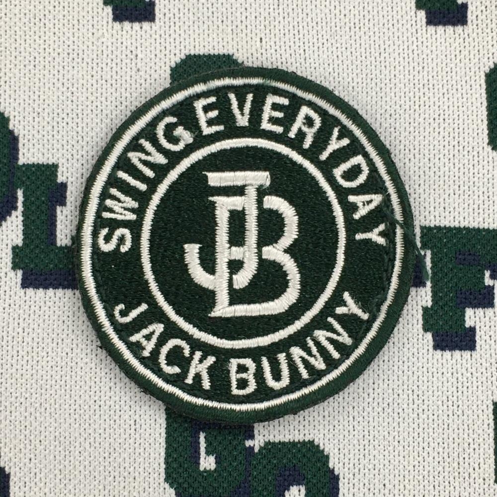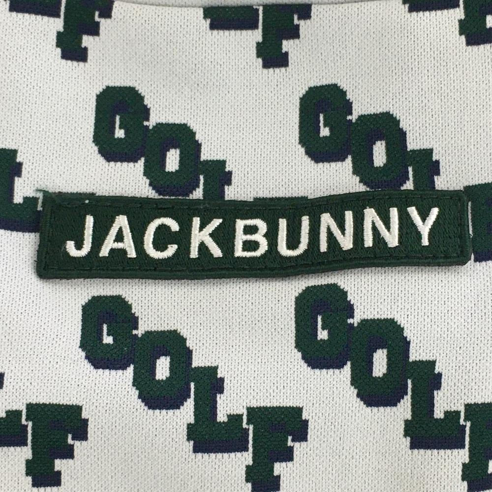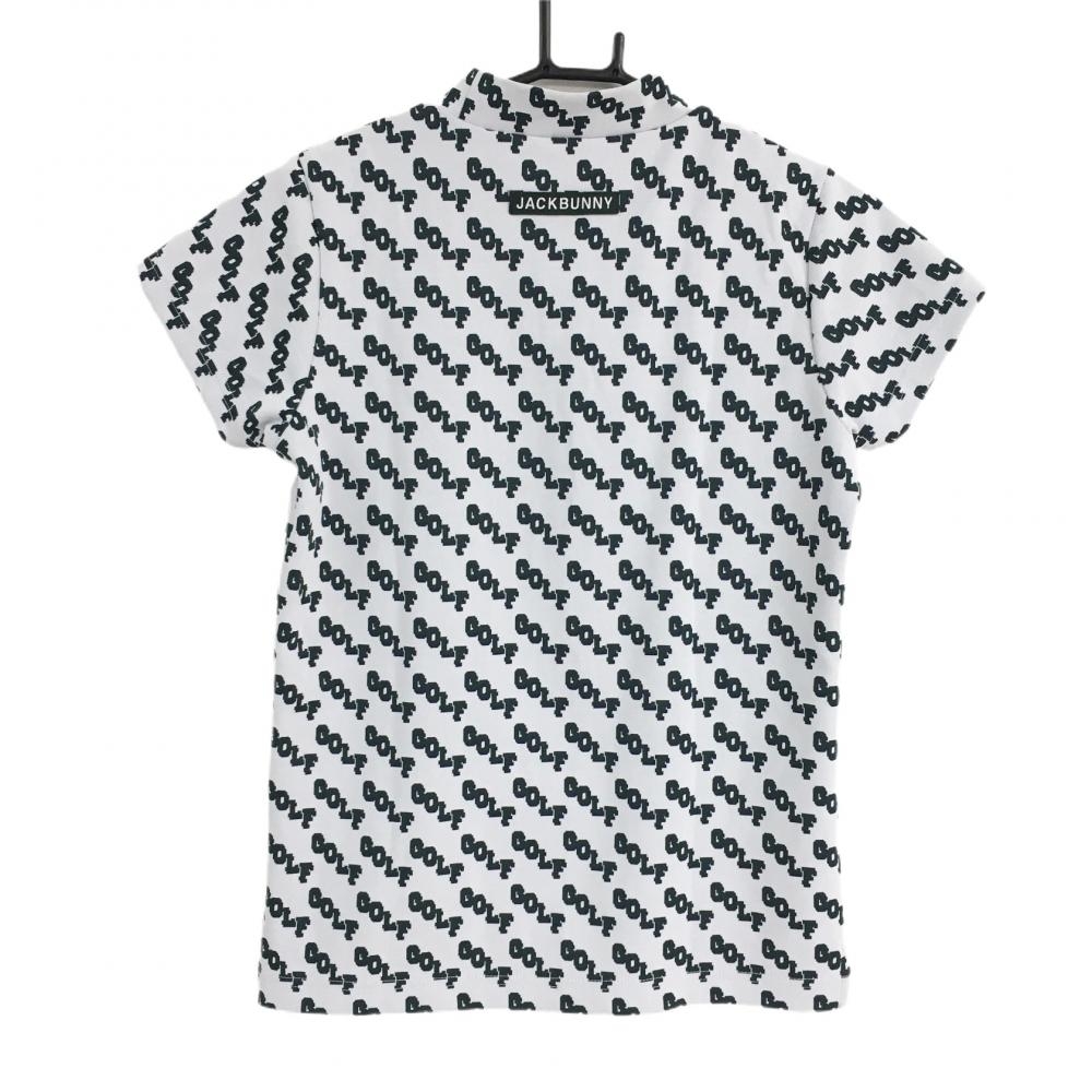 【美品】ジャックバニー 半袖ハイネックシャツ 白×グリーン 英字総柄 レディース 0(S) ゴルフウェア 2023年モデル Jack Bunny