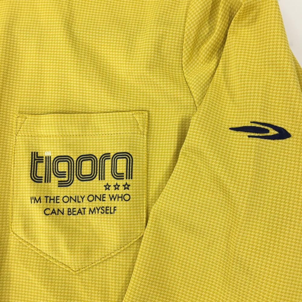 【超美品】ティゴラ 長袖ポロシャツ イエロー 織生地 胸ポケット レディース L ゴルフウェア TIGORA