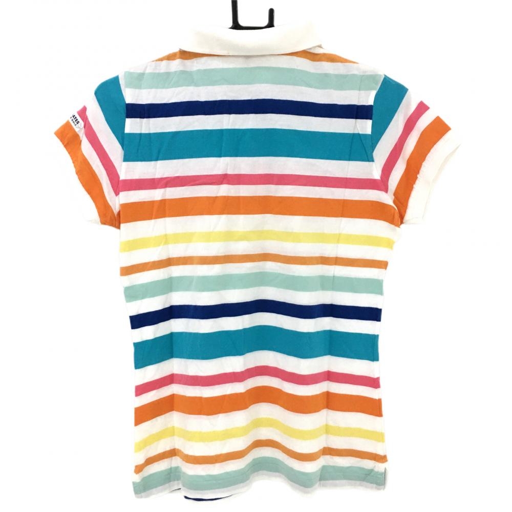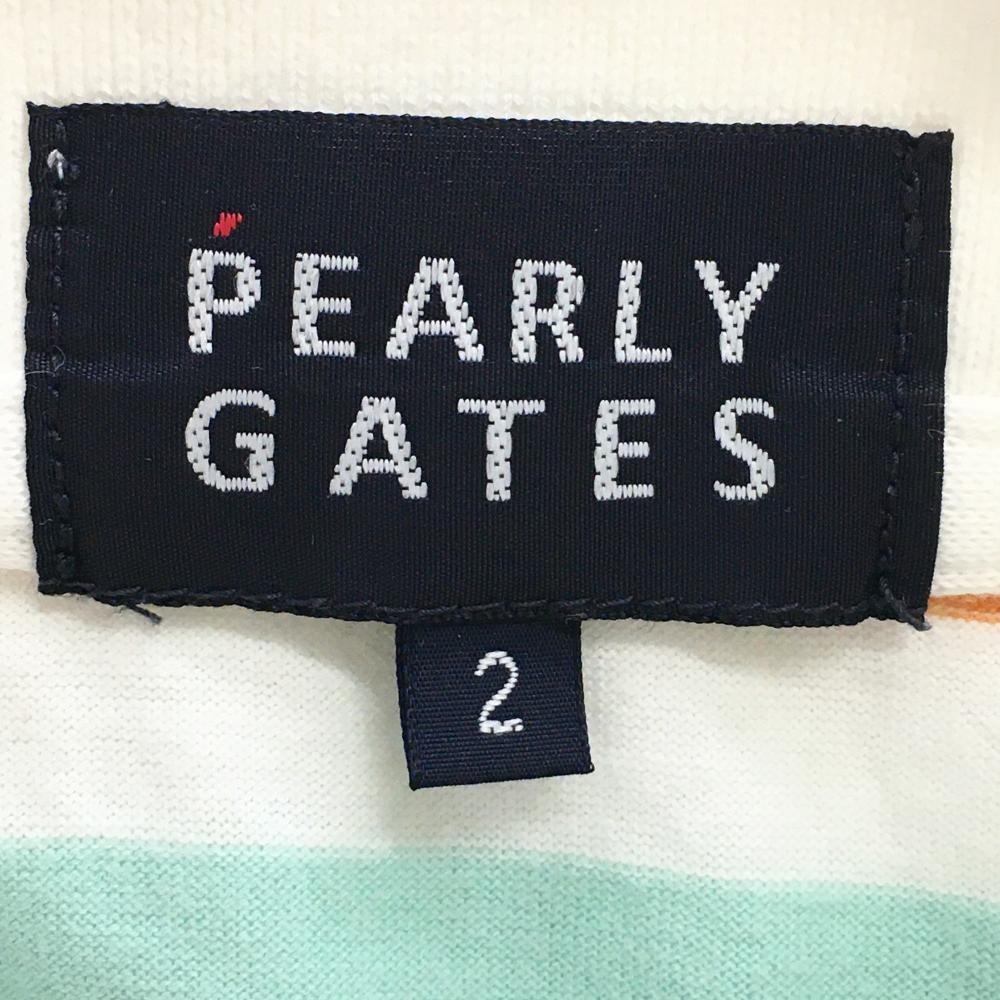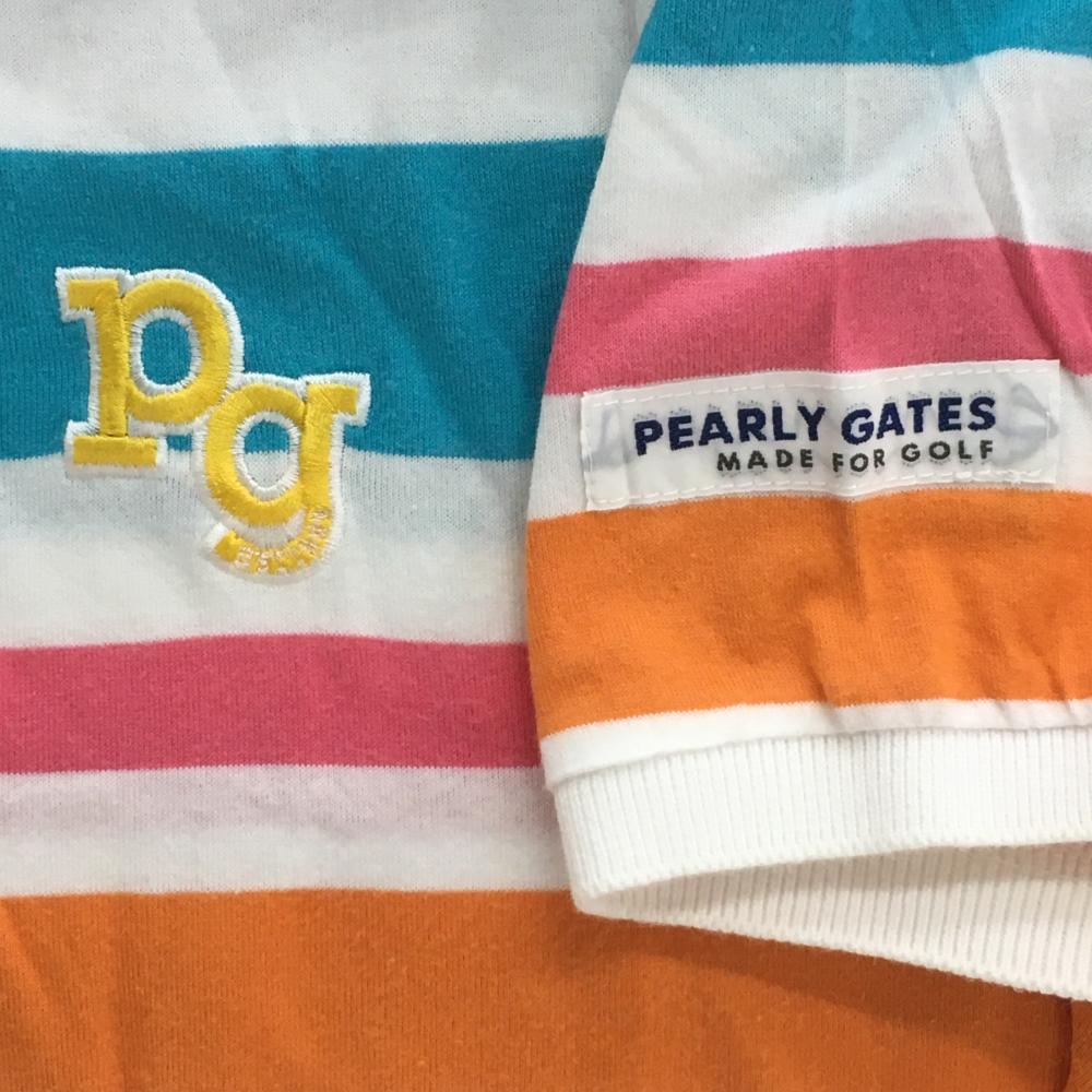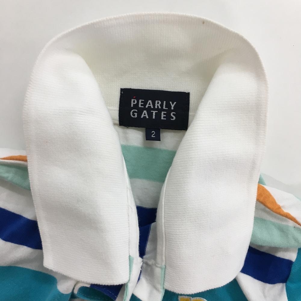 パーリーゲイツ 半袖ポロシャツ ライトブルー×マルチカラー ボーダー レディース 2(L) ゴルフウェア PEARLY GATES