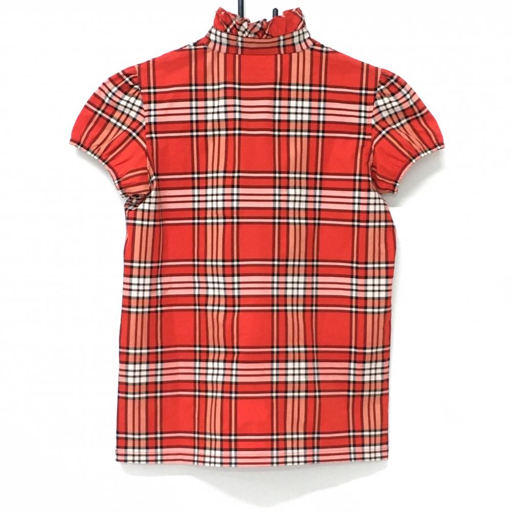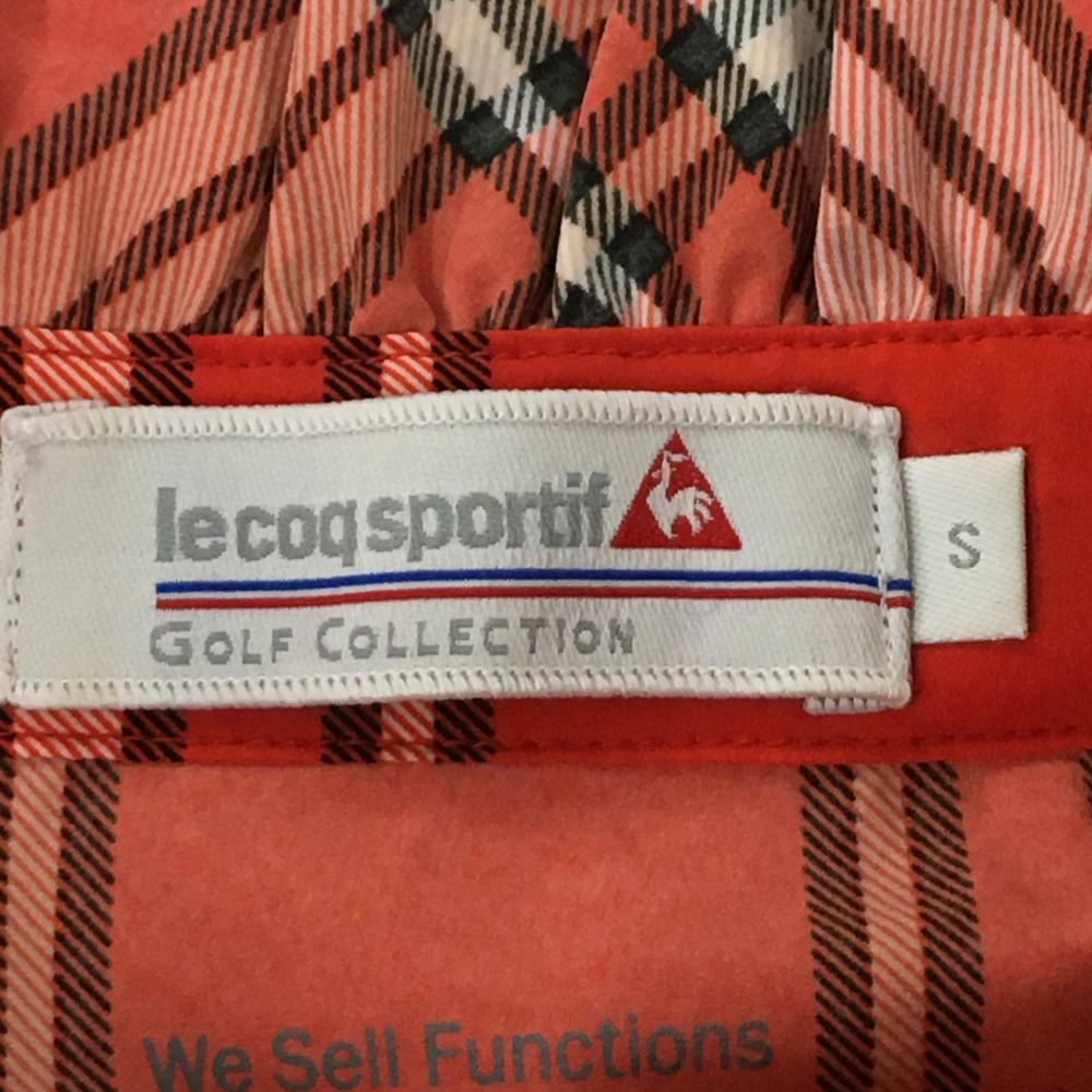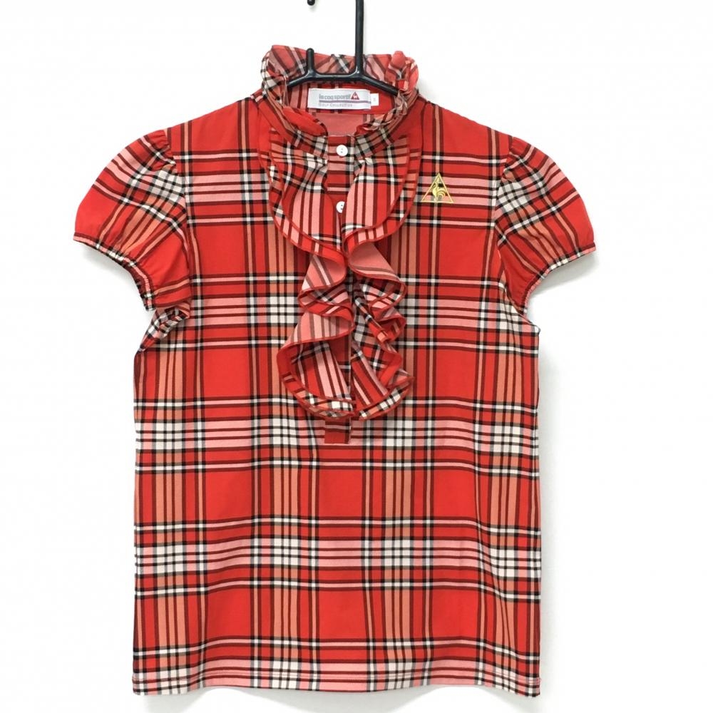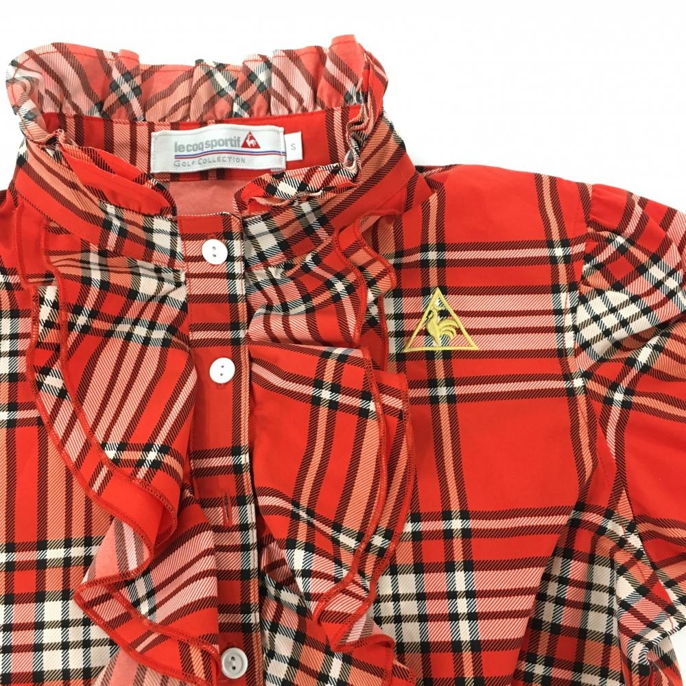 【超美品】ルコック 半袖ポロシャツ レッド×黒 チェック 襟・前立てフリル レディース S ゴルフウェア le coq sportif