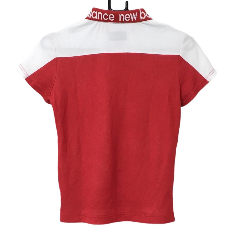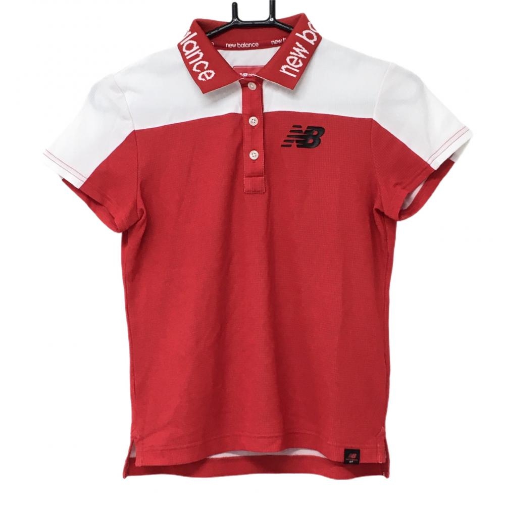 【超美品】ニューバランスゴルフ 半袖ポロシャツ レッド×白 バイカラー 襟ロゴ レディース 0(S) ゴルフウェア New Balance