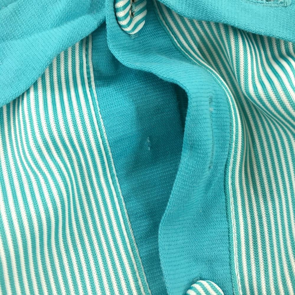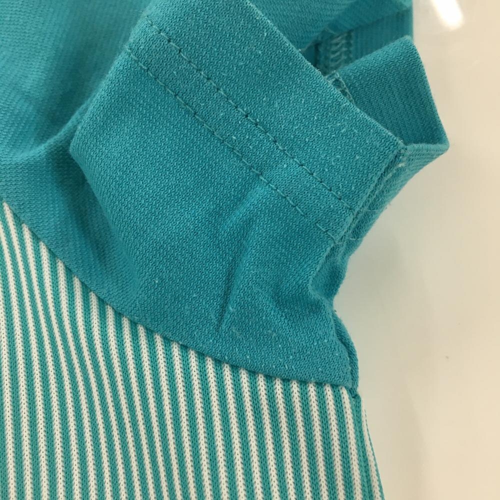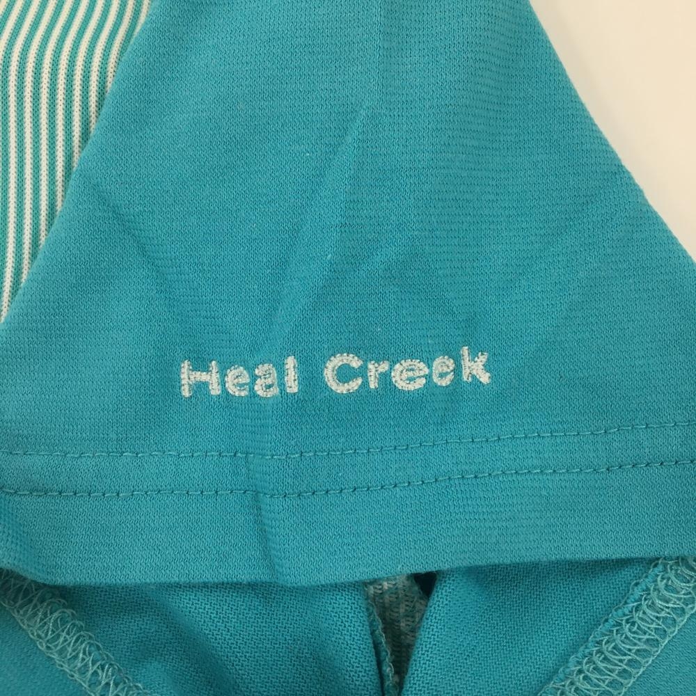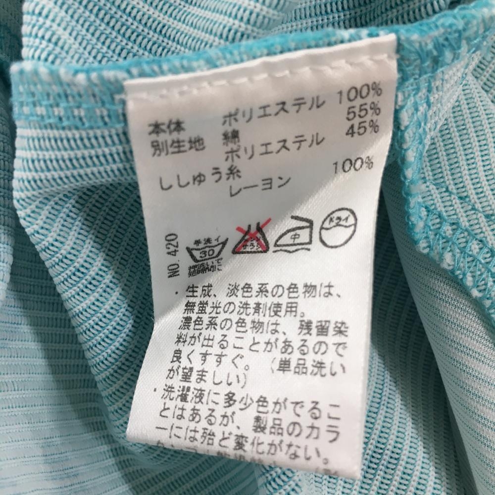 【美品】ヒールクリーク ハイネックワンピース ライトブルー×白 ストライプ 花柄 ボタン レディース 40(M) ゴルフウェア Heal Creek