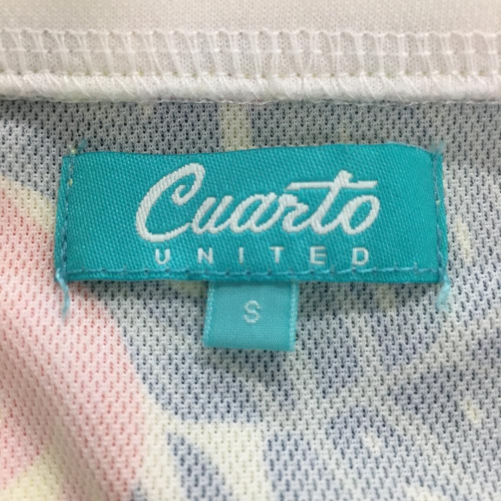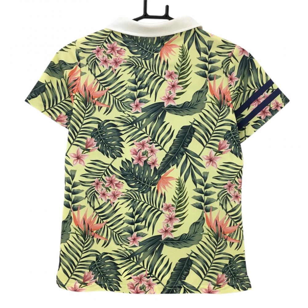 クアルトユナイテッド 襟付き半袖シャツ イエロー×グリーン 花 リーフ柄 レディース S ゴルフウェア CUARTO UNITED