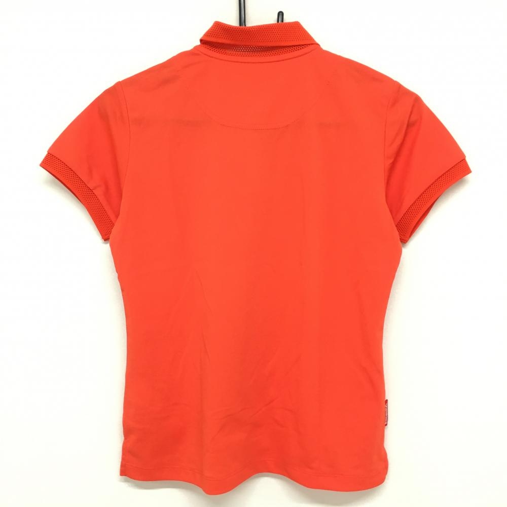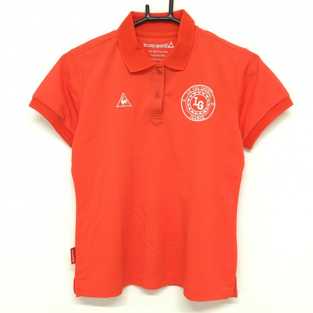 【美品】ルコック 半袖ポロシャツ オレンジ ロゴ刺しゅう 襟・袖口メッシュ調 レディース M ゴルフウェア le coq sportif