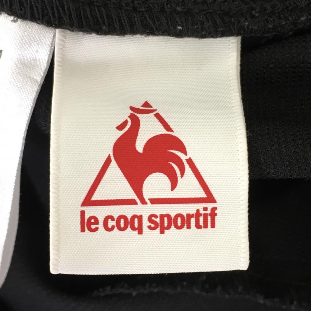【超美品】ルコック 半端丈パンツ 黒×ピンク 一部ドット柄 ロゴ刺しゅう 裾ドローコード レディース S ゴルフウェア le coq sportif