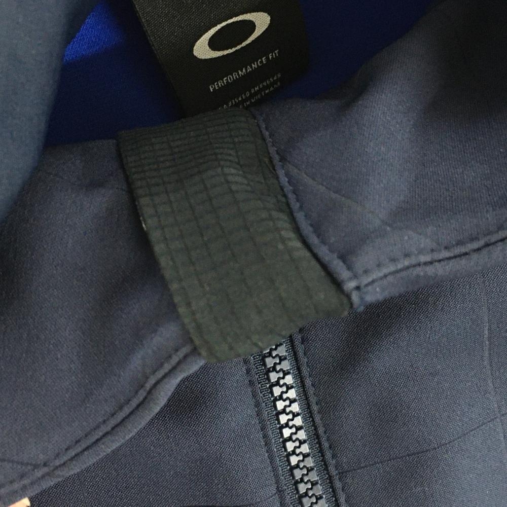 【美品】オークリー 切替ジャケット ネイビー×ブルー 前身頃格子織生地 メンズ S ゴルフウェア Oakley