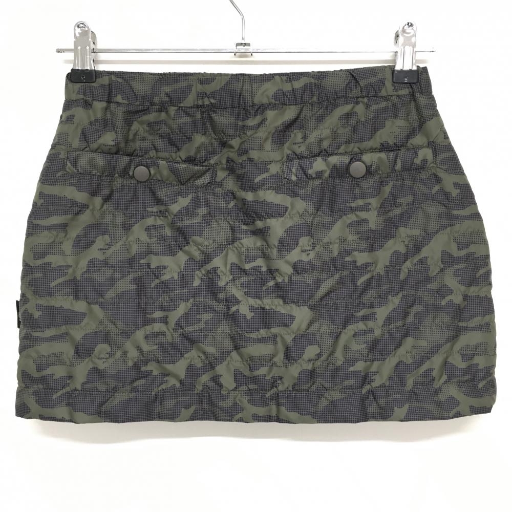 【超美品】キャロウェイ 中綿スカート カーキ×ネイビー カモフラ総柄 迷彩 フロントボタン レディース SS ゴルフウェア Callaway