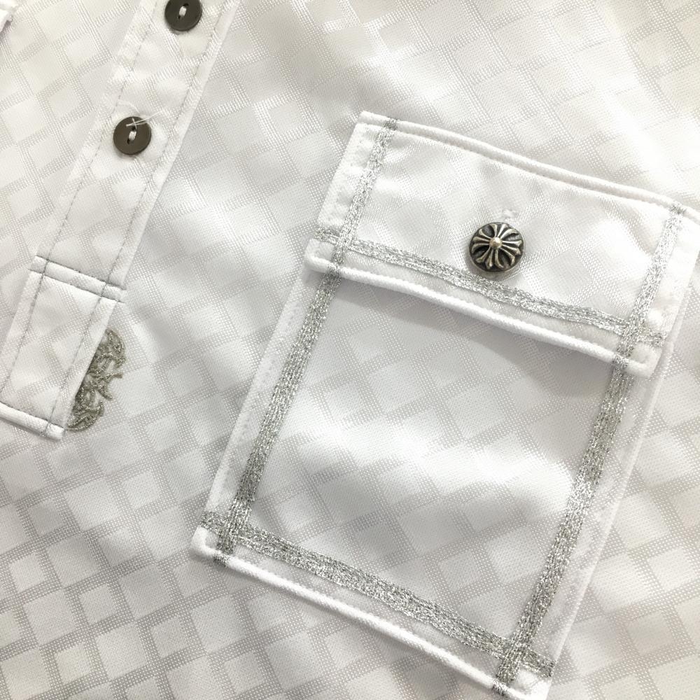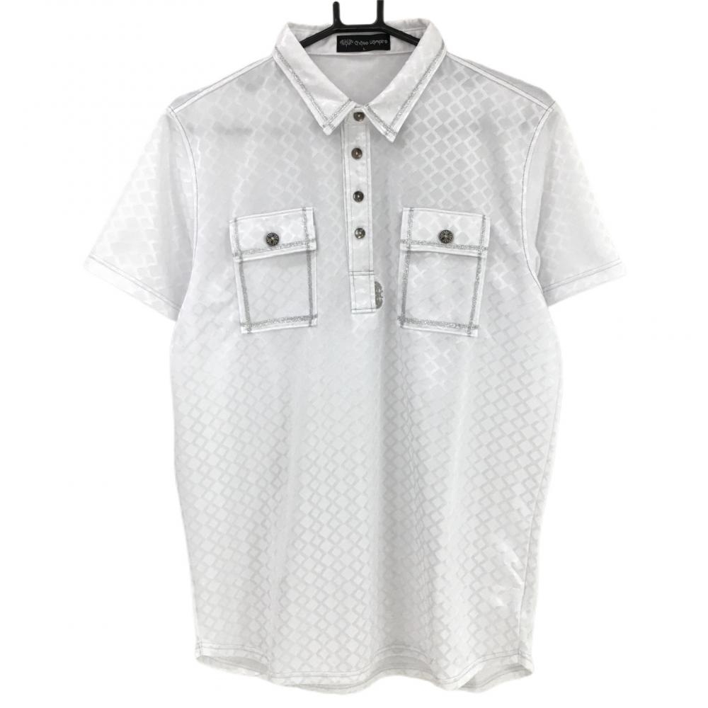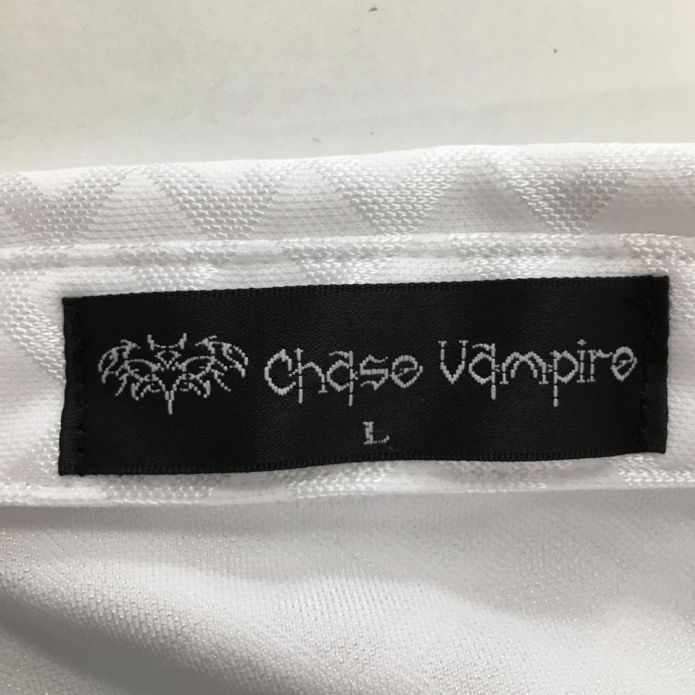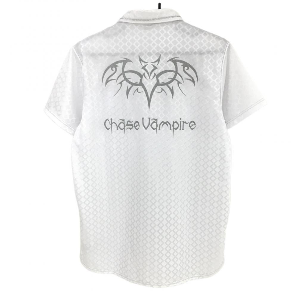 【超美品】チェイスバンパイア 半袖ポロシャツ 白×シルバー 地模様 胸ポケット メンズ L ゴルフウェア CHASE VAMPIRE