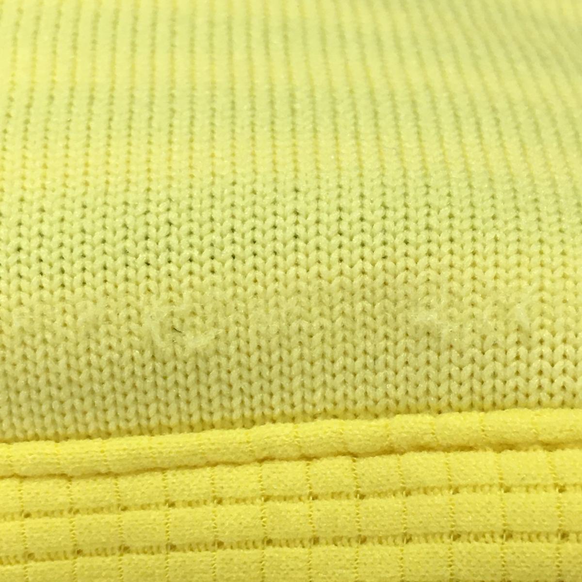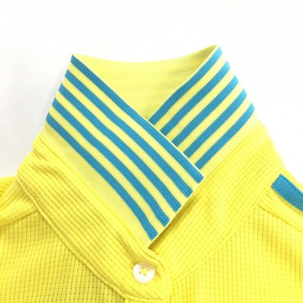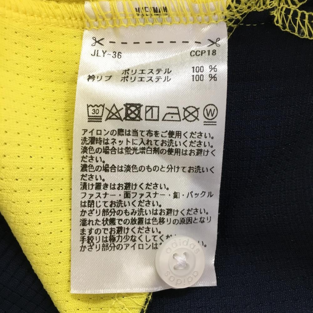 【美品】アディダス 半袖ポロシャツ イエロー×ネイビー 織生地 ロゴ刺しゅう 肩・袖3ライン レディース M/M ゴルフウェア adidas