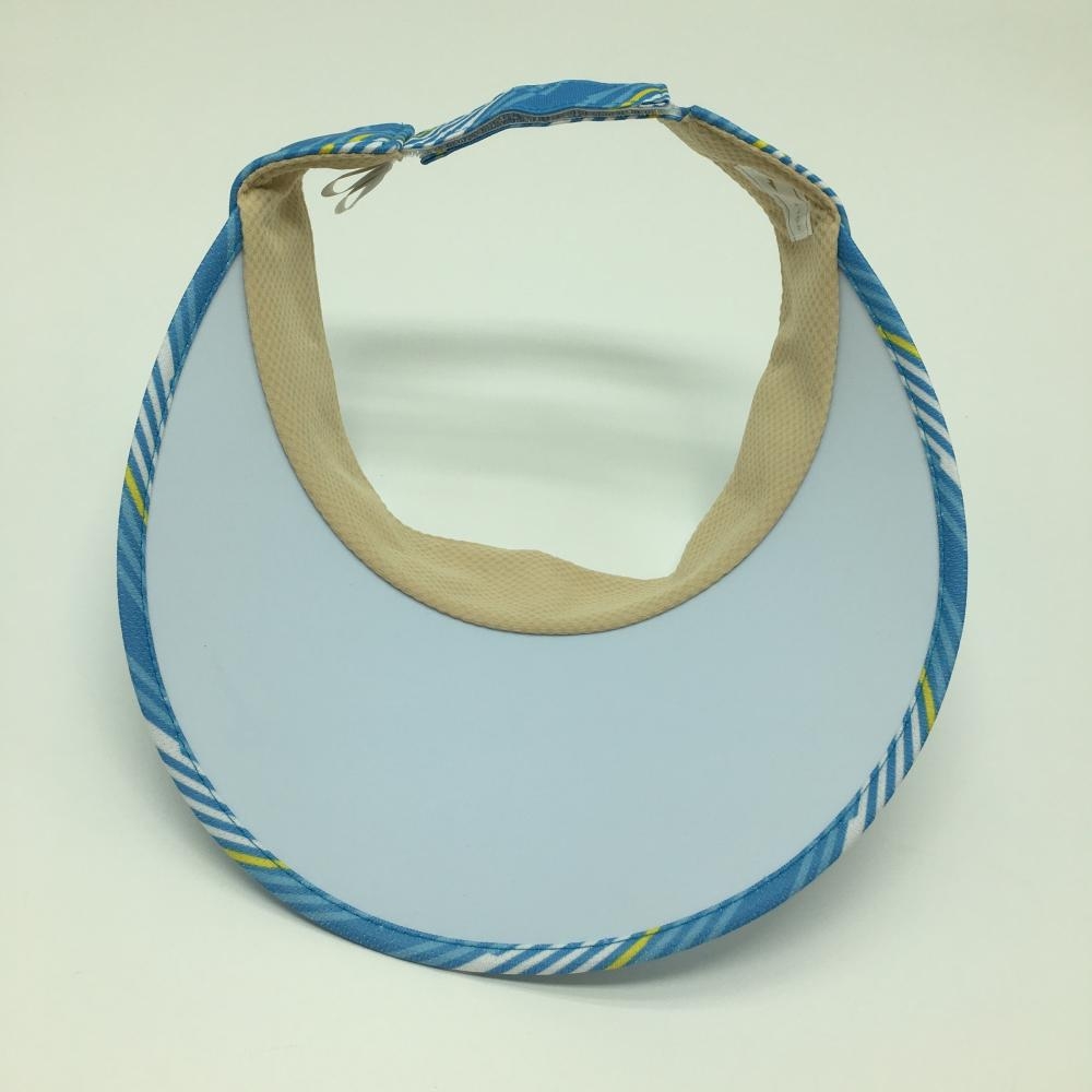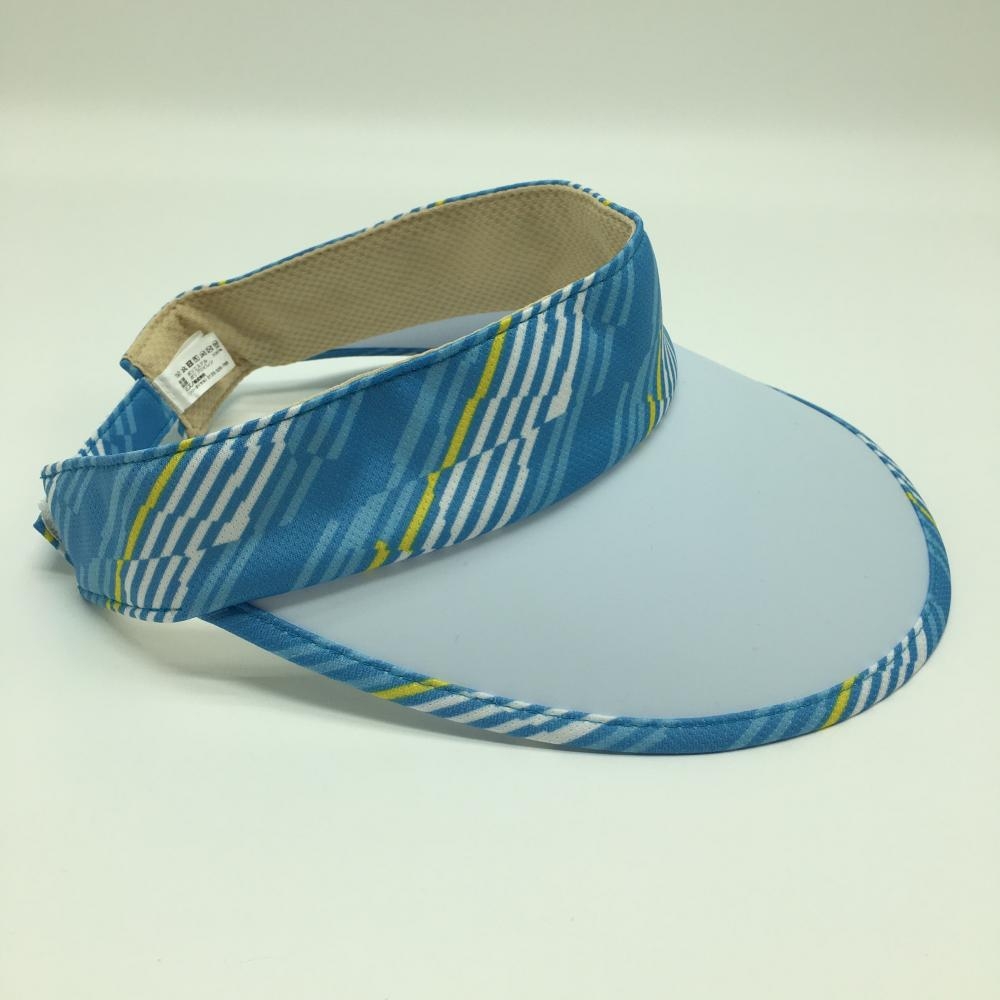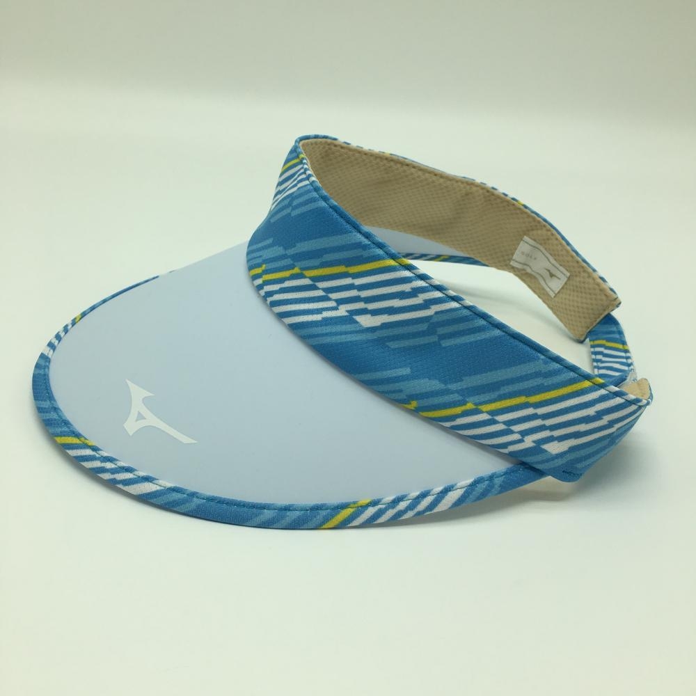 【超美品】ミズノ サンバイザー ライトブルー×白 一部斜め柄 F(55-59cm) ゴルフウェア MIZUNO