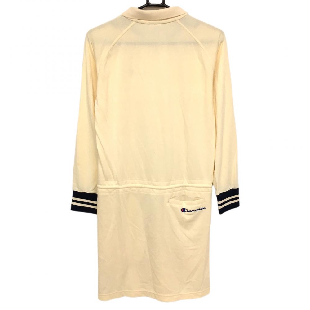 チャンピオン 襟付きワンピース ライトベージュ×ネイビー ロゴ刺しゅう ウエスト紐 レディース MEDIUM ゴルフウェア Champion