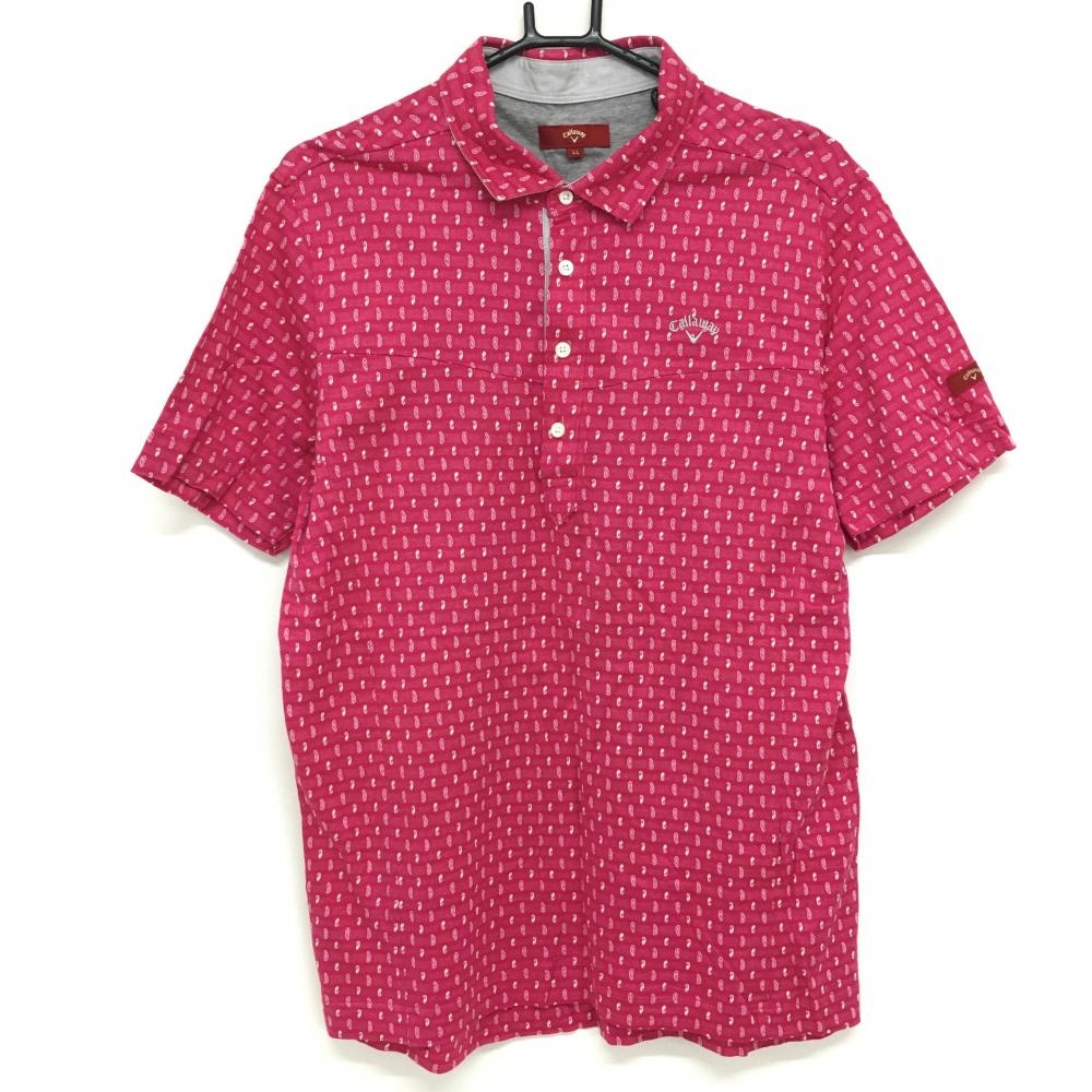 【美品】キャロウェイ レッドレーベル 半袖ポロシャツ ピンク×白 総柄 メンズ LL ゴルフウェア Callaway