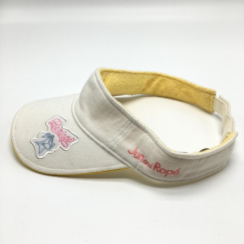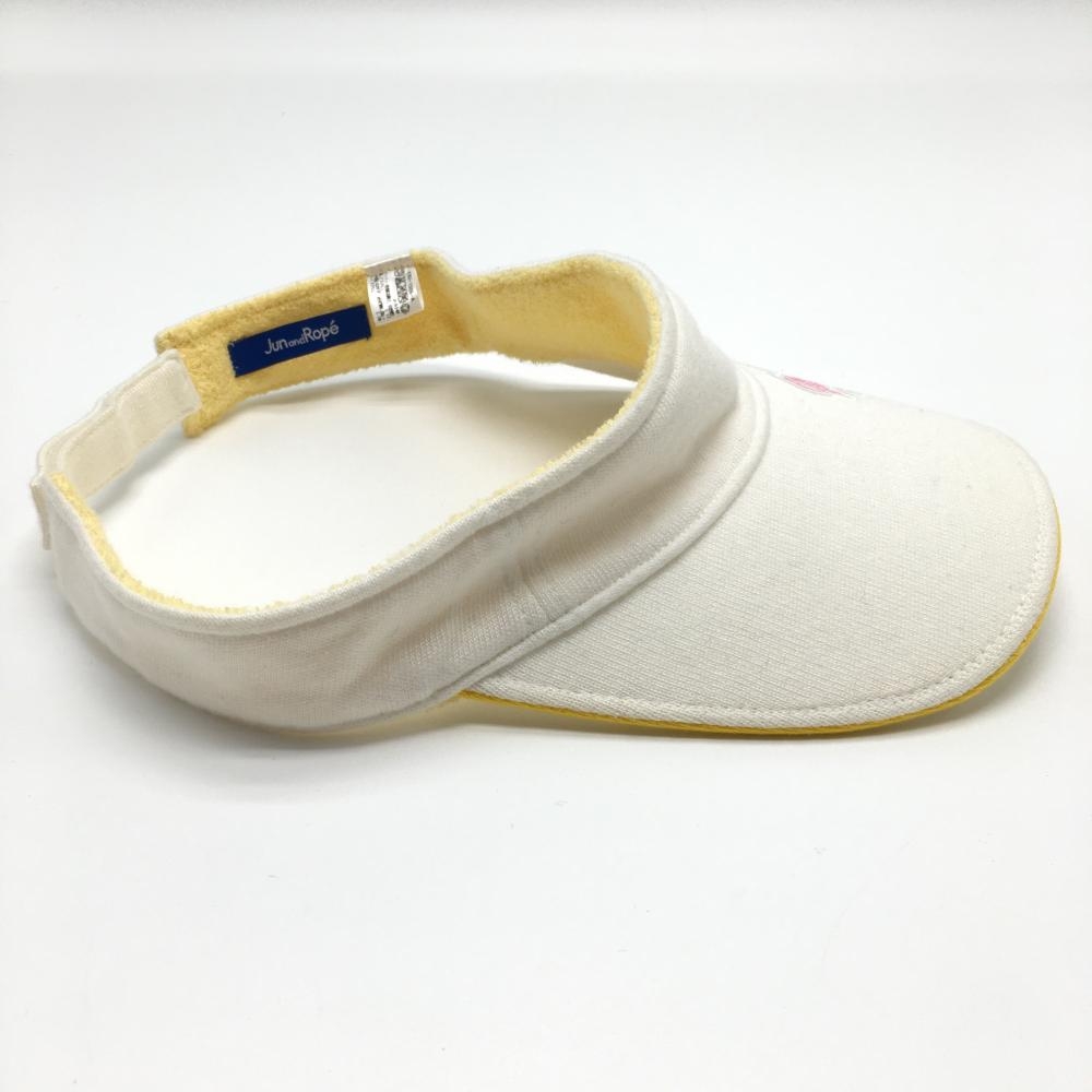 【美品】ジュンアンドロペ サンバイザー 白×イエロー ロゴ刺しゅう 内側パイル地 表記なし ゴルフウェア JUN&ROPE