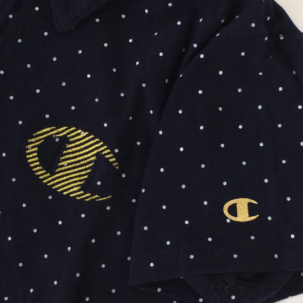 【美品】チャンピオン 半袖ポロワンピース ネイビー×白 ドット ロゴゴールド レディース M ゴルフウェア Champion