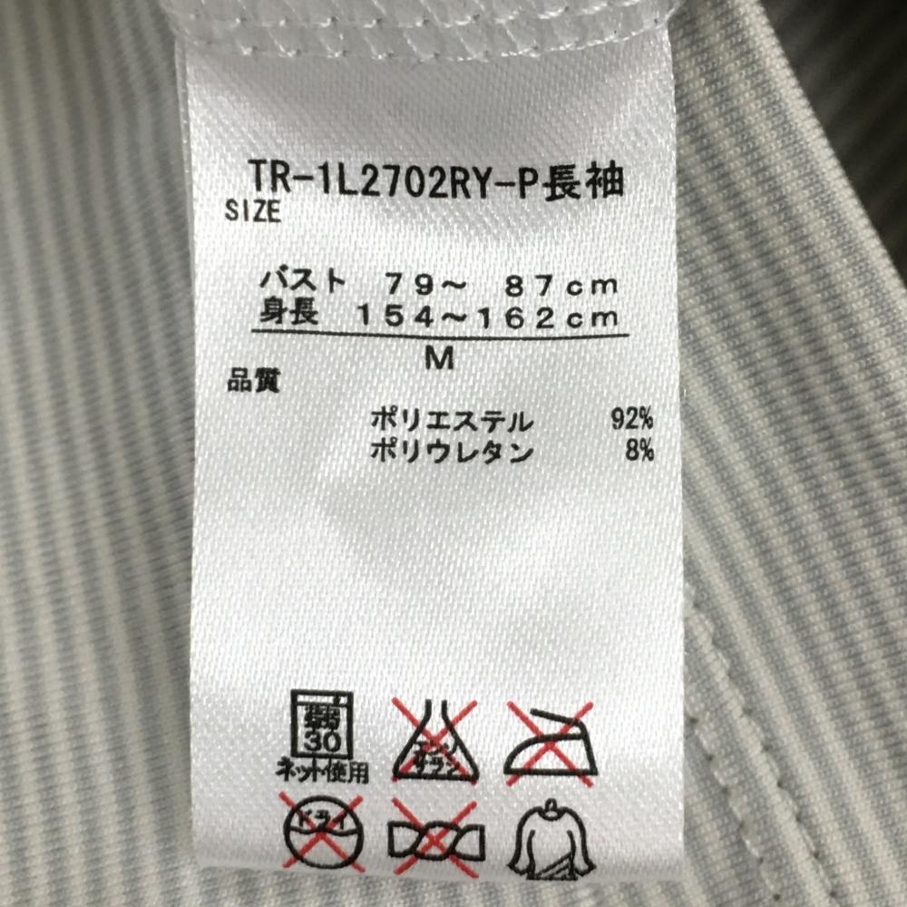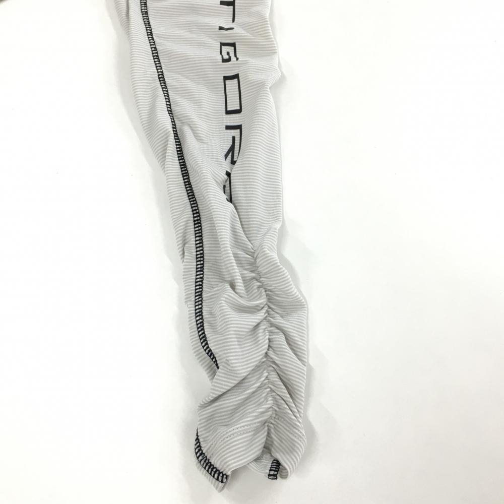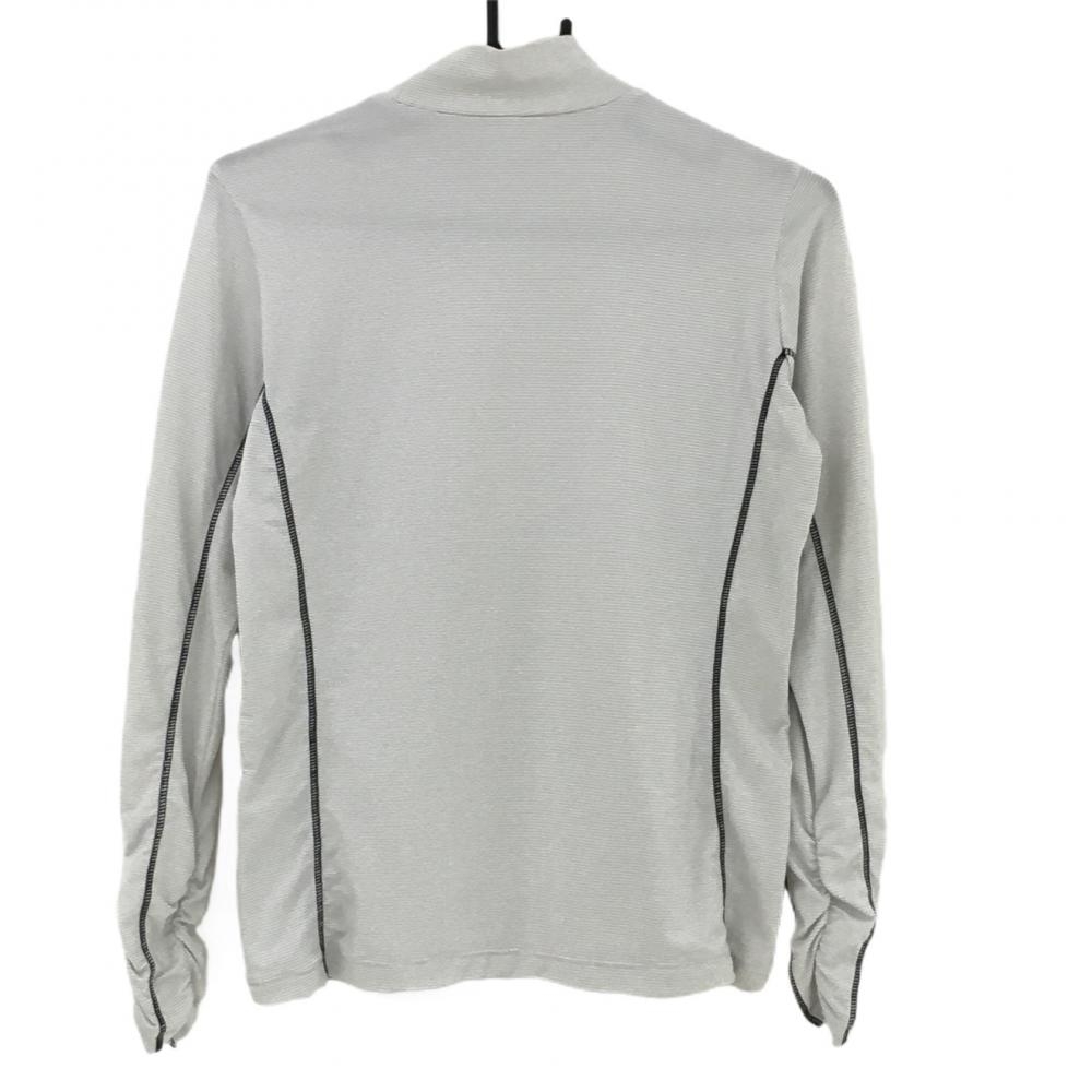 【美品】ティゴラ ハイネックインナーシャツ グレー×白 細ボーダー 袖口ギャザー 袖ロゴ レディース M ゴルフウェア TIGORA