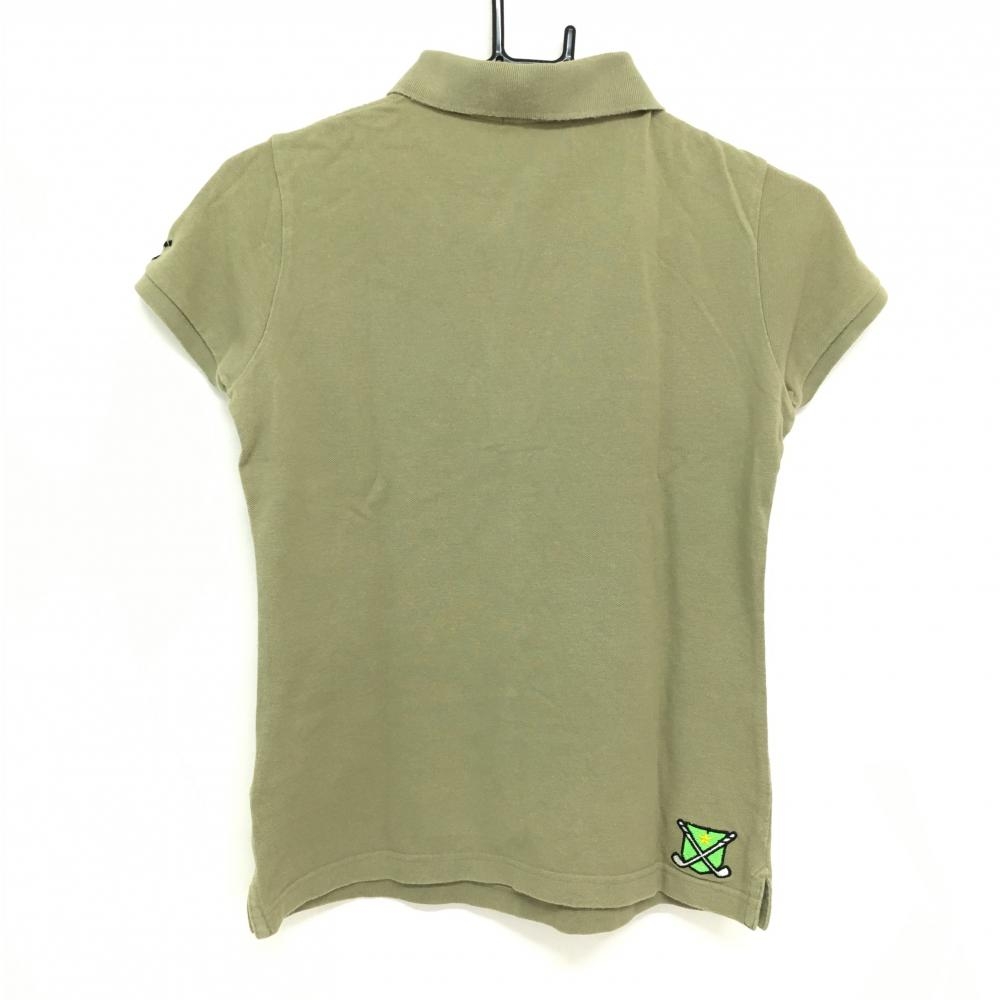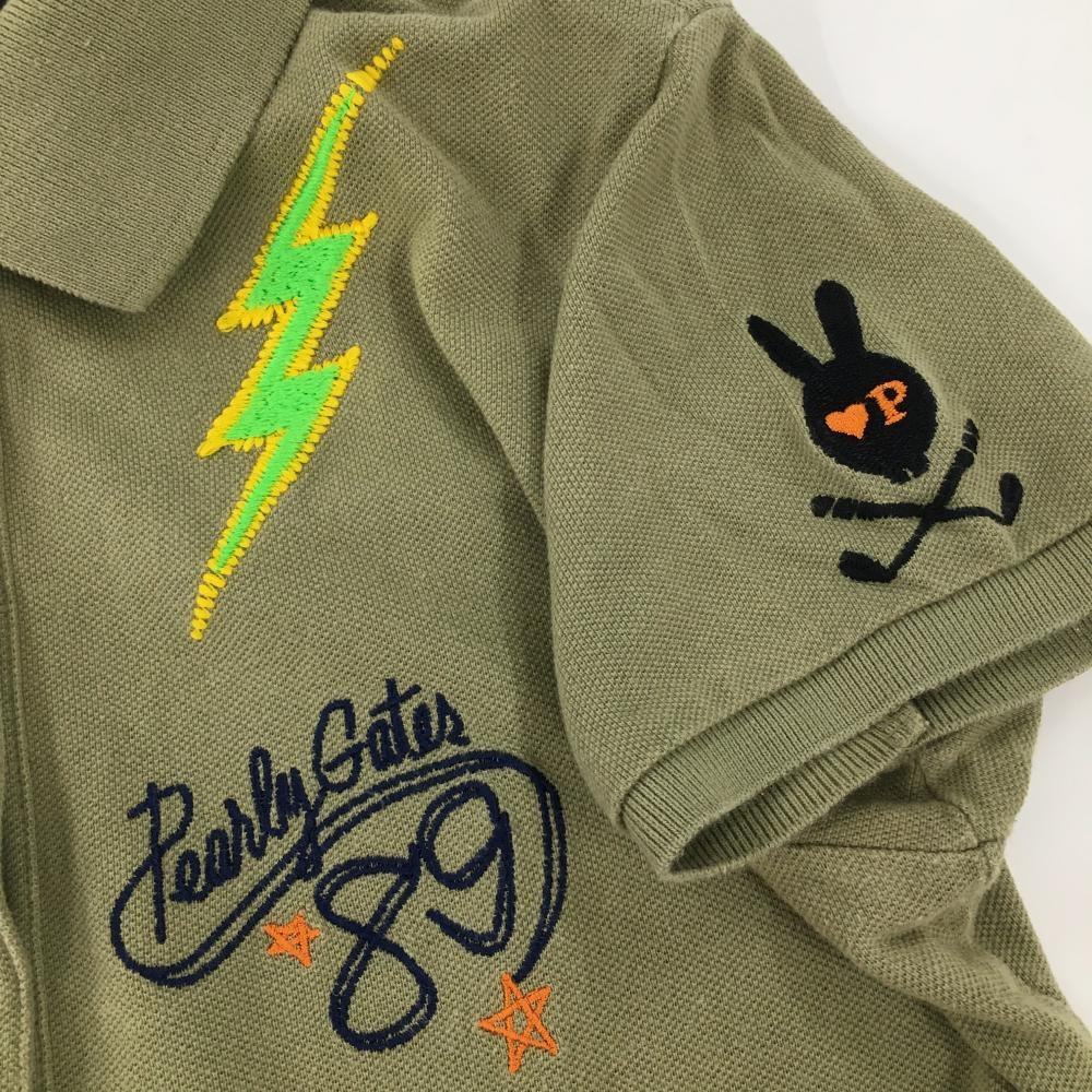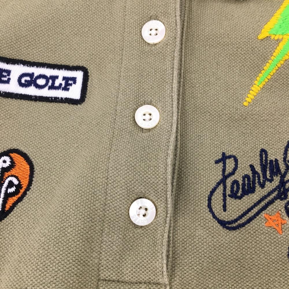 パーリーゲイツ 半袖ポロシャツ カーキ 複数ワッペン 稲妻 レディース 1(M) ゴルフウェア PEARLY GATES