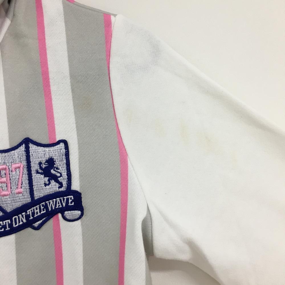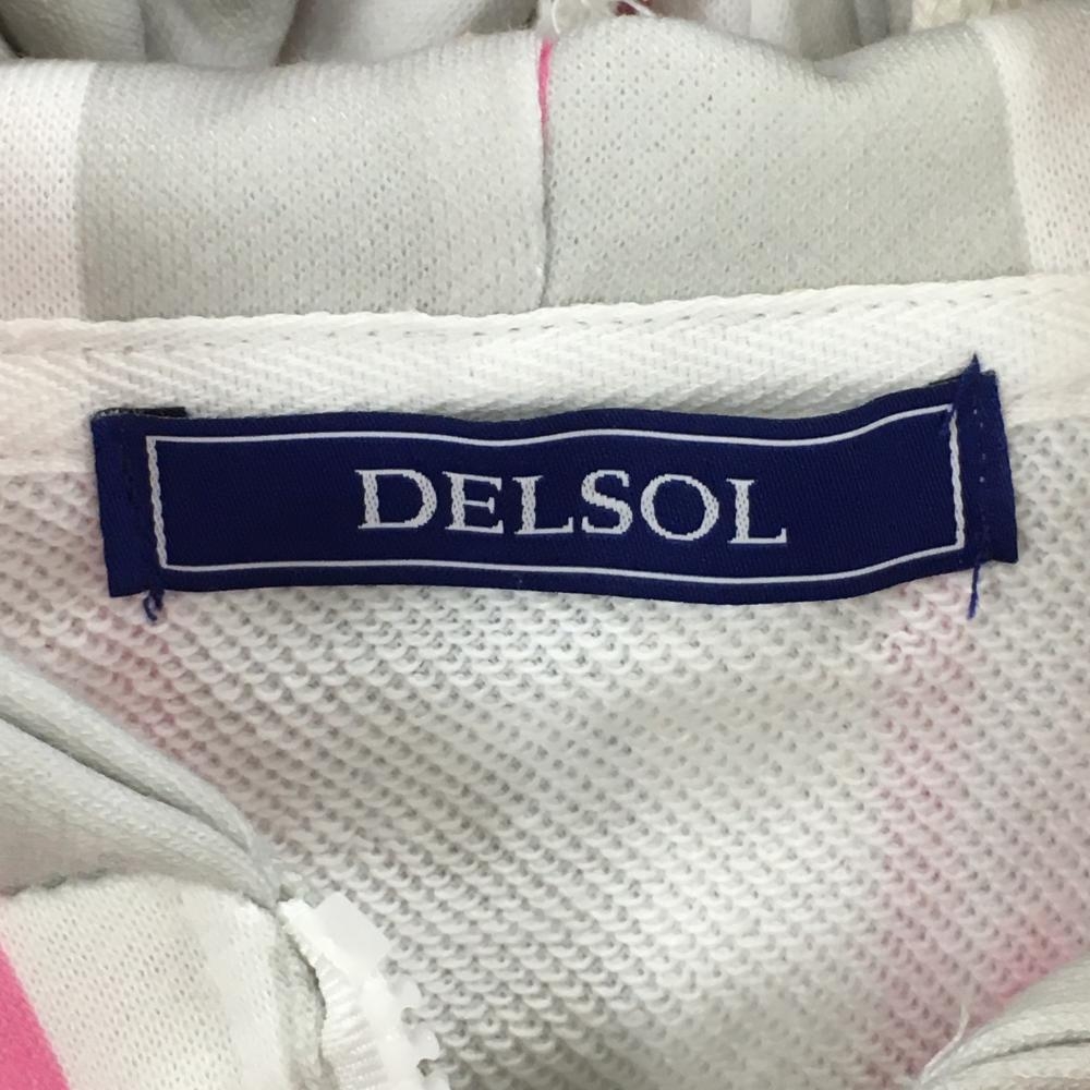 デルソル ジップパーカー グレー 白×グレー×ピンク 身頃ストライプ レディース M ゴルフウェア DELSOL