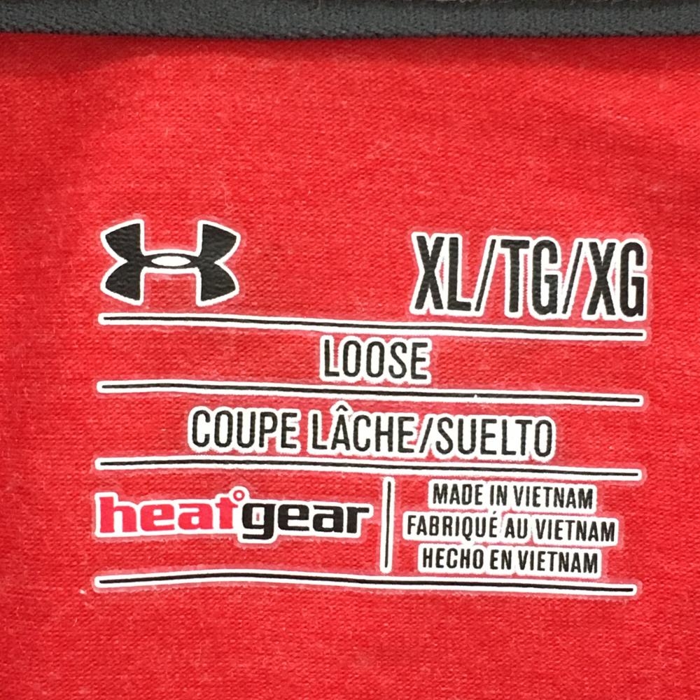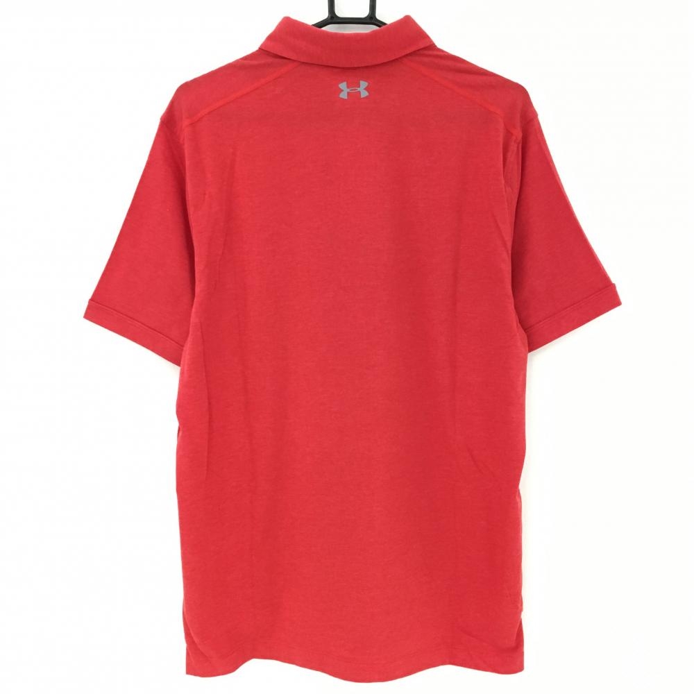 【美品】アンダーアーマー 半袖ポロシャツ 杢レッド シンプル ヒートギア メンズ XL ゴルフウェア UNDER ARMOUR