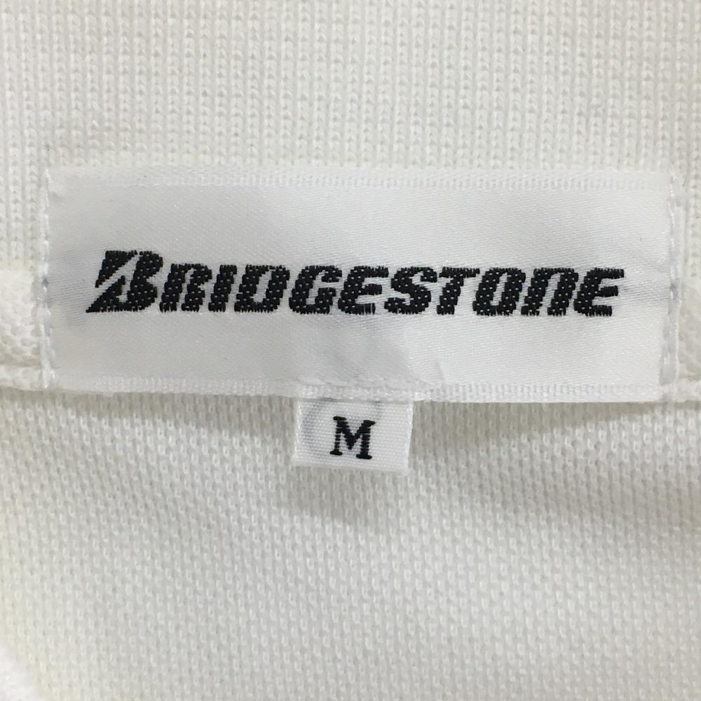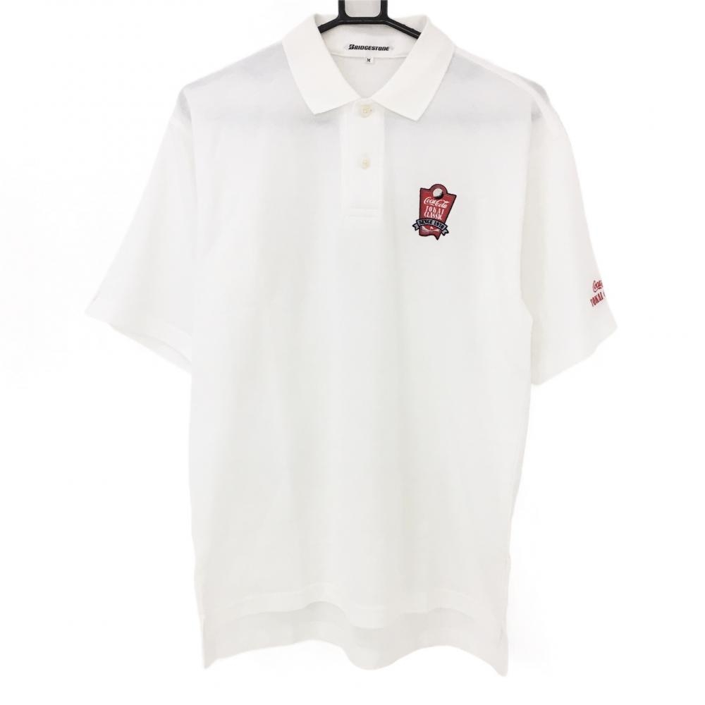 【美品】ブリヂストン 半袖ポロシャツ 白×レッド ワッペン 袖刺しゅう メンズ M ゴルフウェア Bridgestone