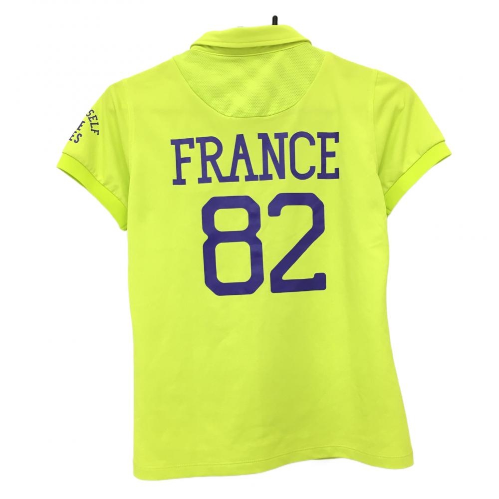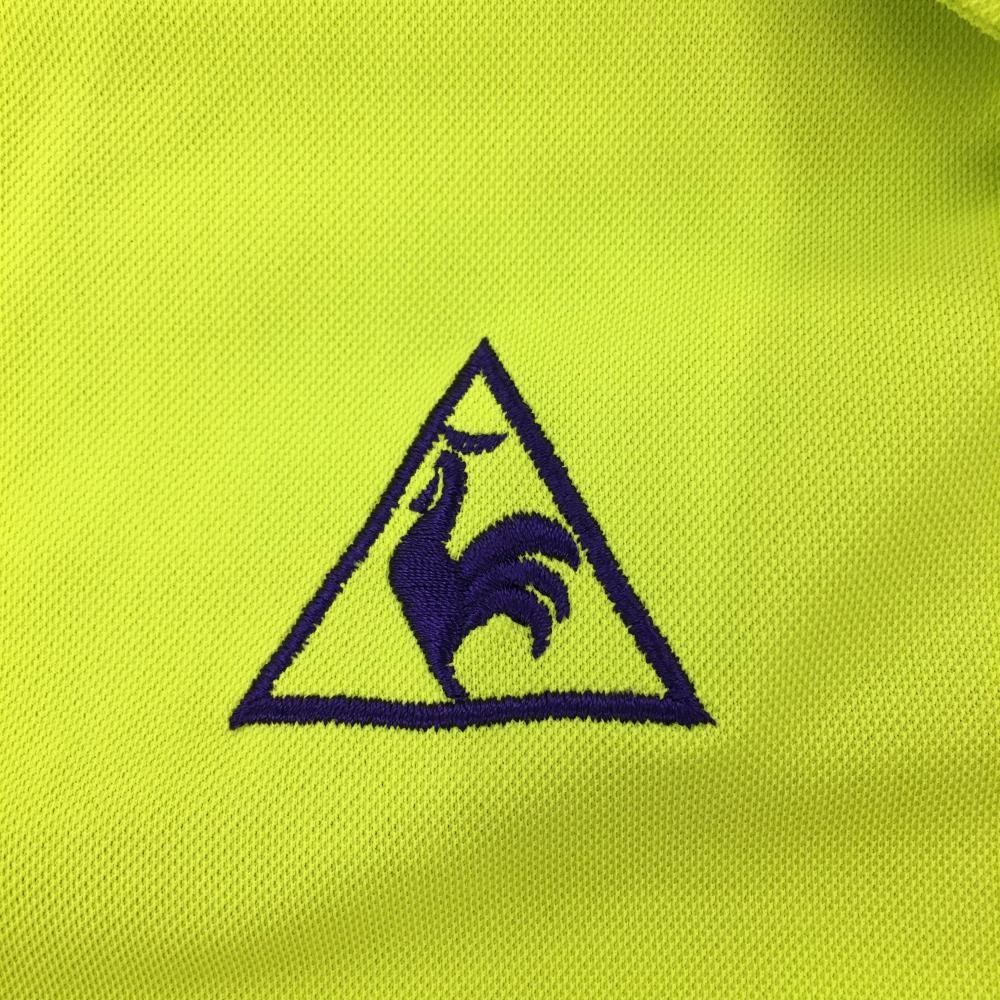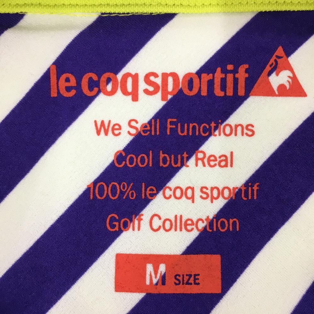 【美品】ルコック 半袖ポロシャツ ライトグリーン×ネイビー ロゴプリント レディース M ゴルフウェア le coq sportif