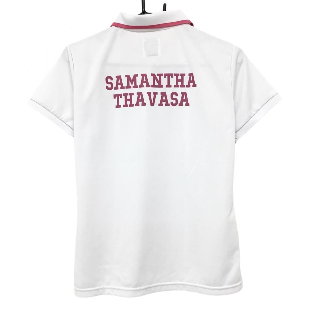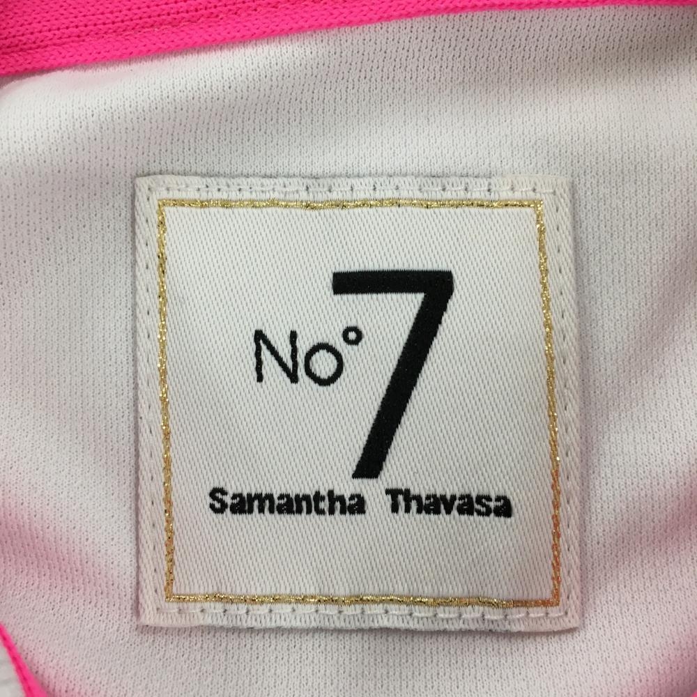 【美品】サマンサタバサ No.7 半袖ポロシャツ 白×ピンク バックロゴプリント レディース 40 ゴルフウェア Samantha Thavasa