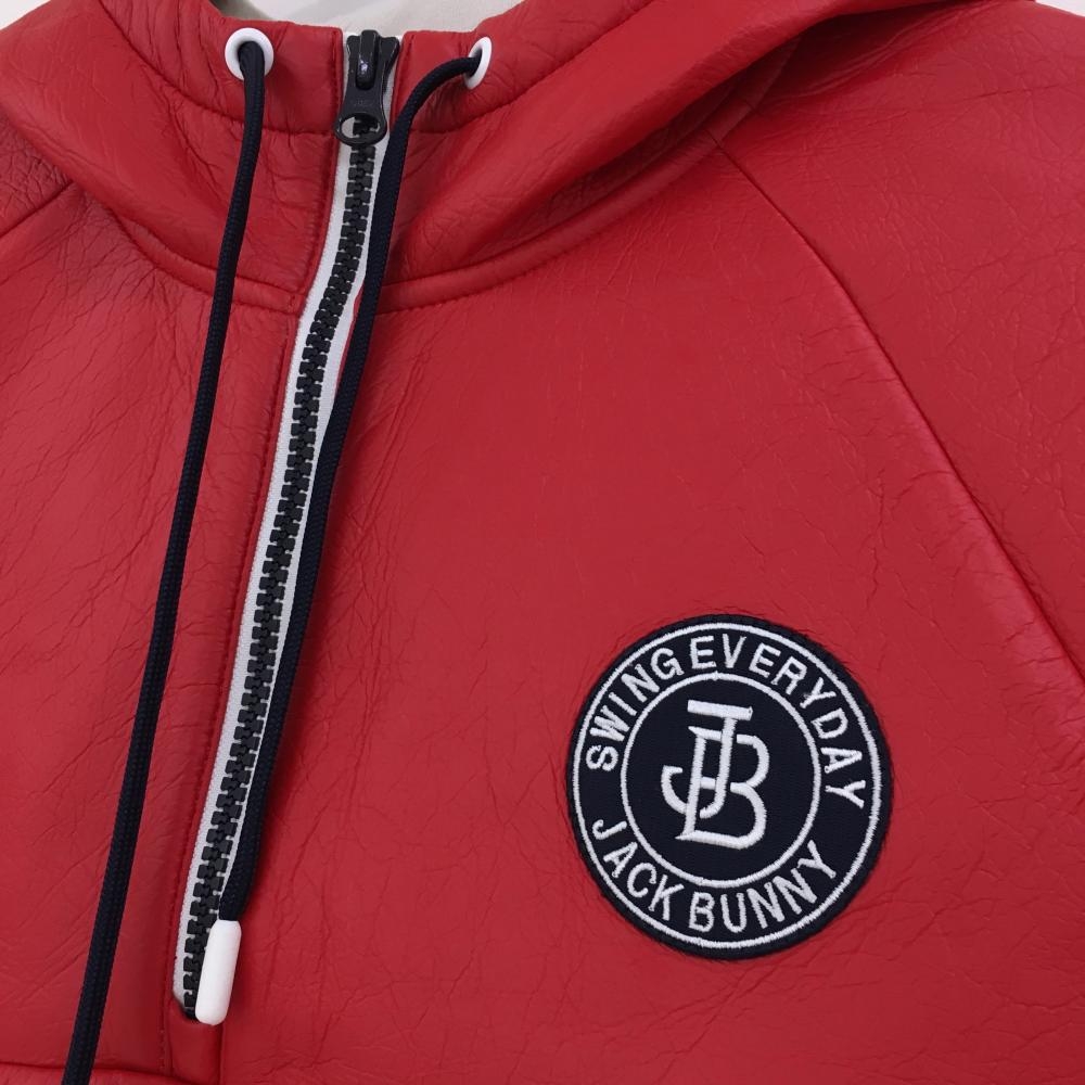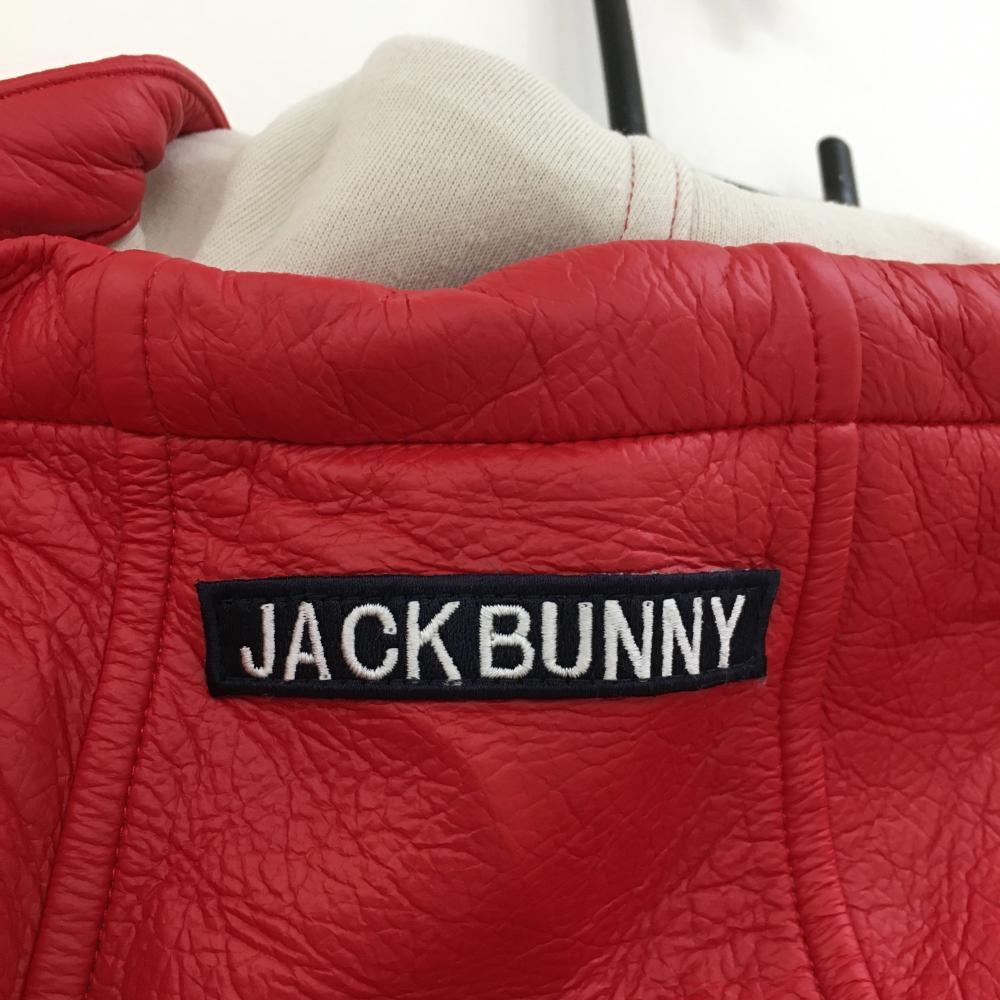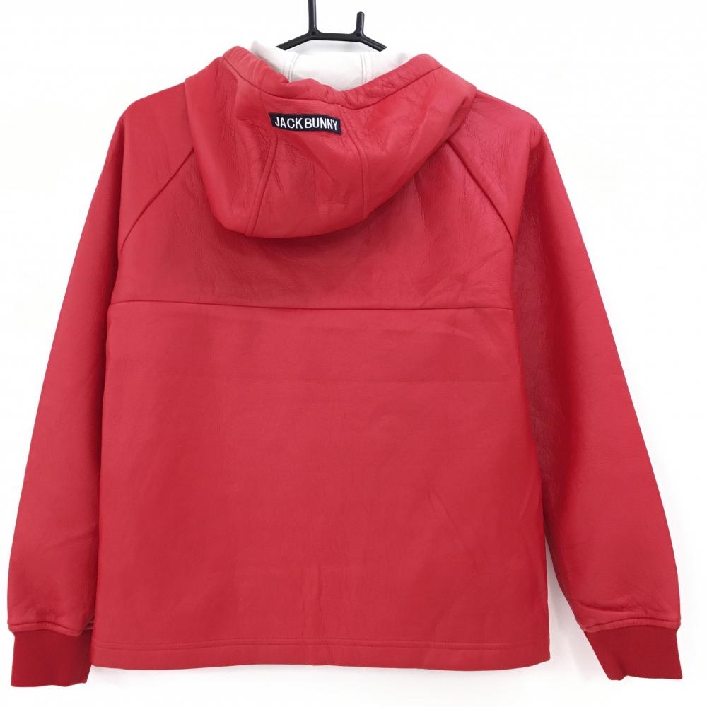 【美品】ジャックバニー パーカー レッド 合成皮革 ハーフジップ ブルゾン レディース 1(M) ゴルフウェア Jack Bunny