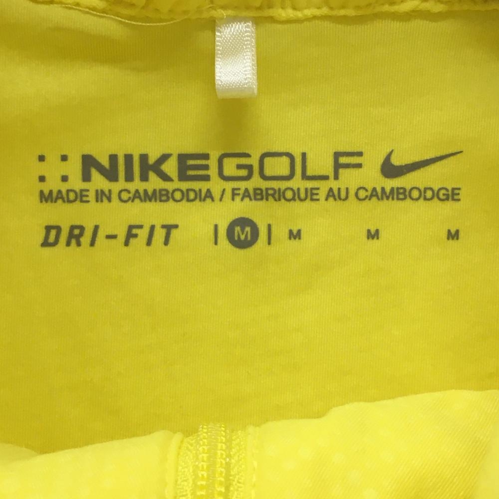 【超美品】ナイキゴルフ 半袖ハイネックシャツ イエロー ドット地模様 ハーフジップ DRI-FIT レディース M ゴルフウェア NIKE