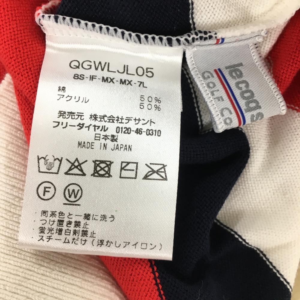 ルコック ニットカーディガン 白×ネイビー×レッド ボーダー レディース L ゴルフウェア le coq sportif