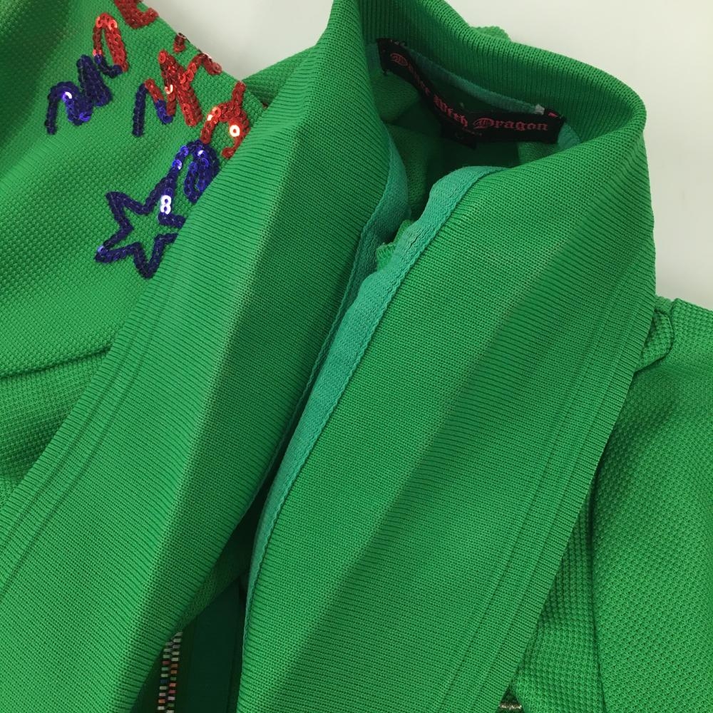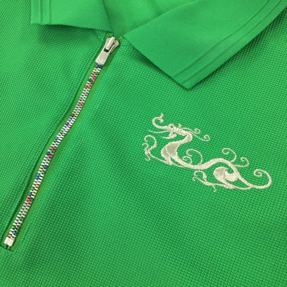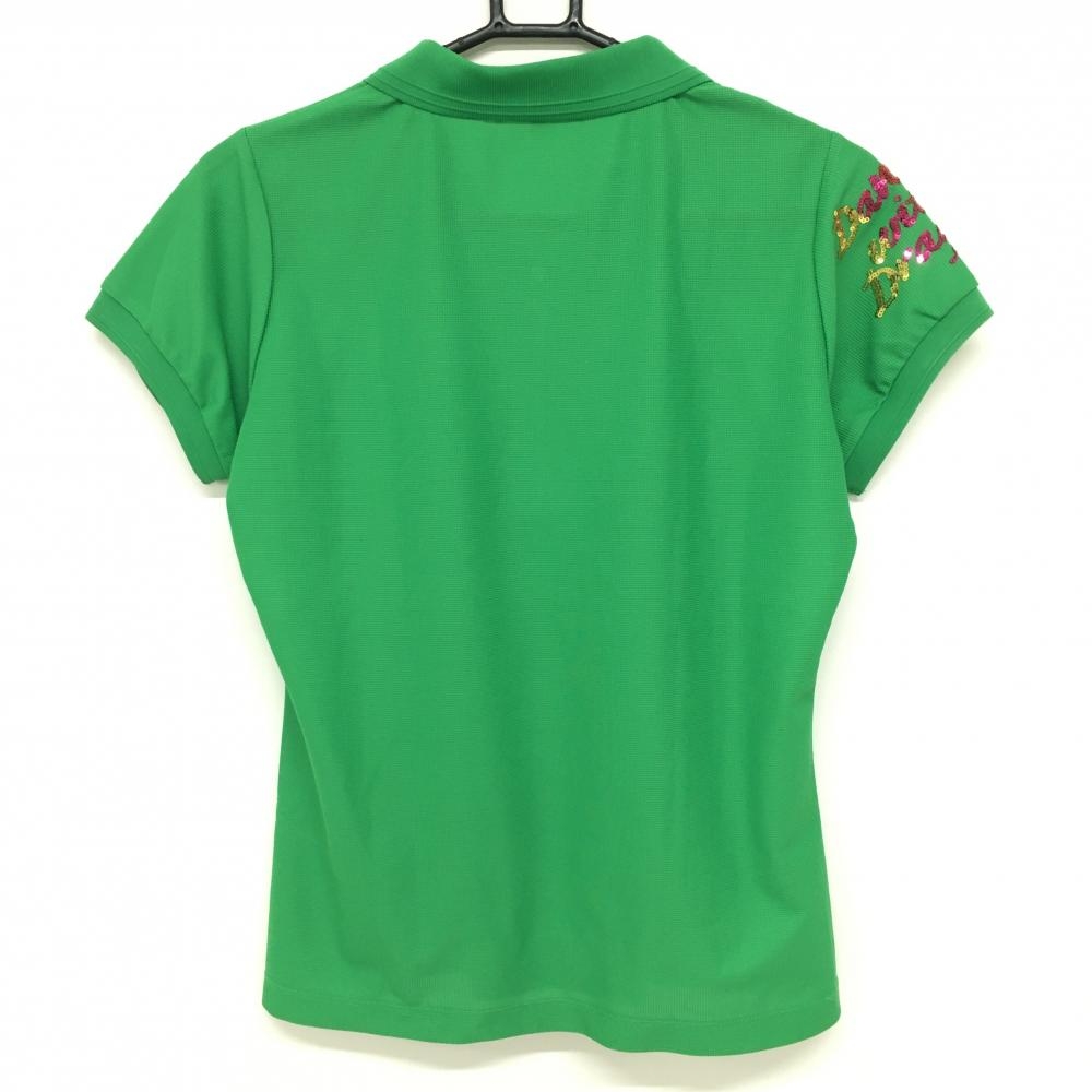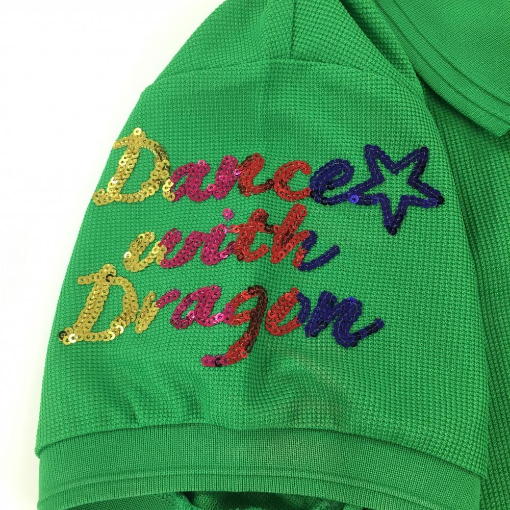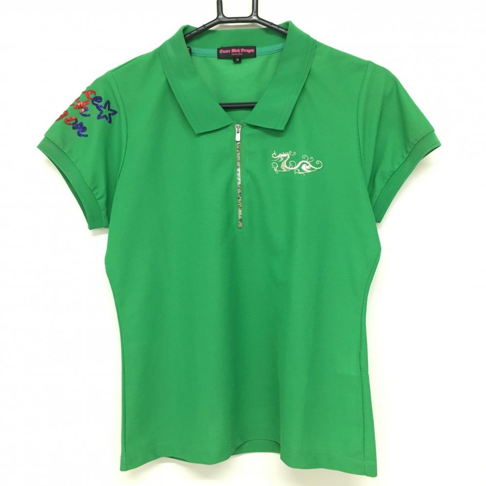 ダンスウィズドラゴン 半袖ポロシャツ グリーン ハーフジップ 袖スパンコールロゴ レディース 3(L) ゴルフウェア Dance With Dragon