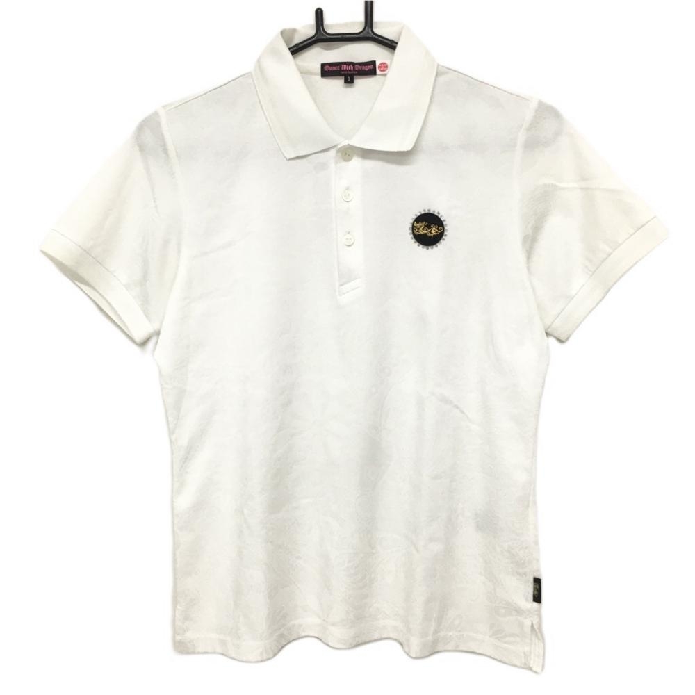 ダンスウィズドラゴン 半袖ポロシャツ 白 総柄織生地 ラインストーン レディース 3(L) ゴルフウェア Dance With Dragon