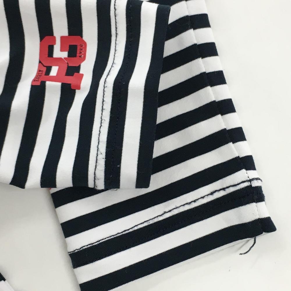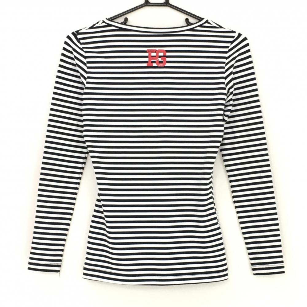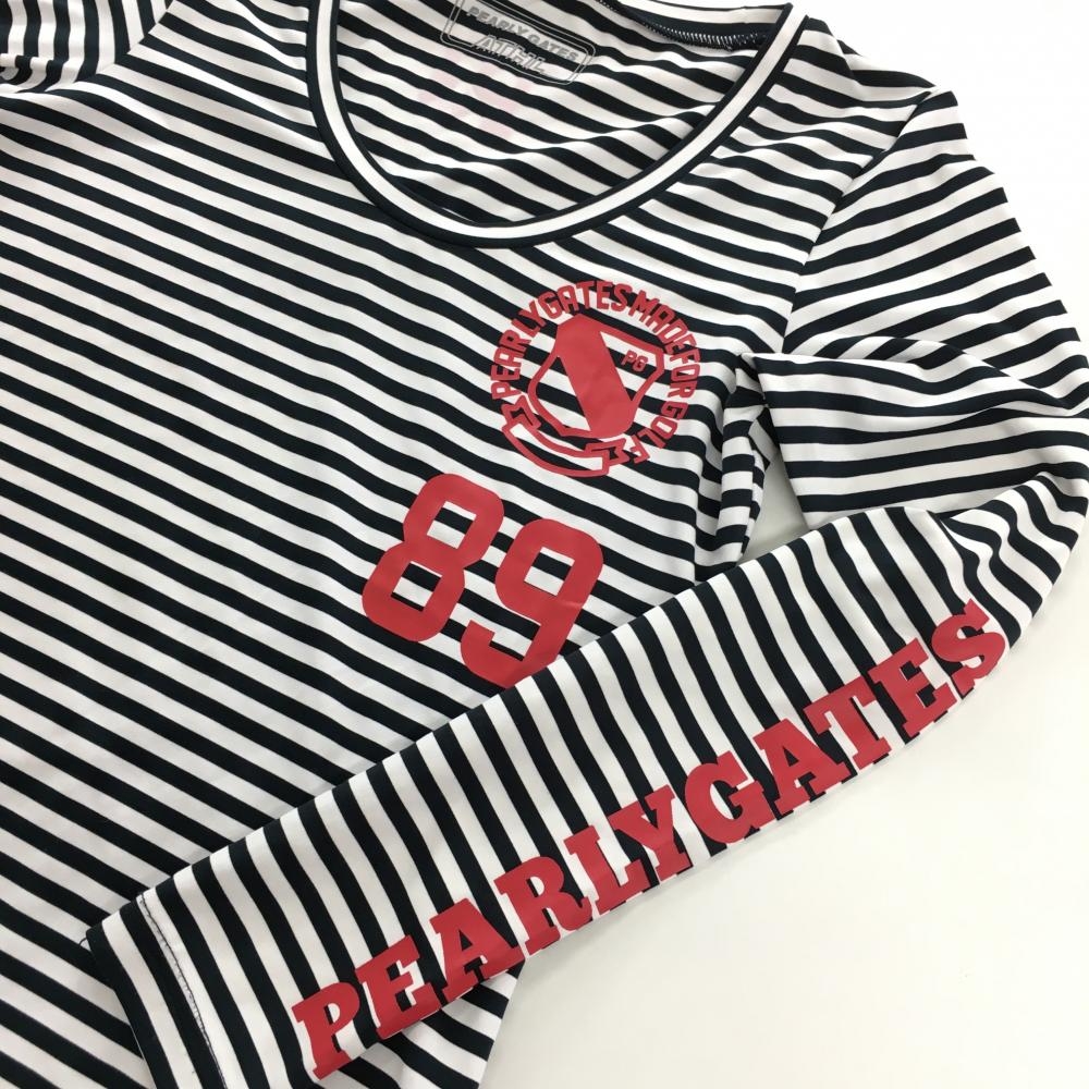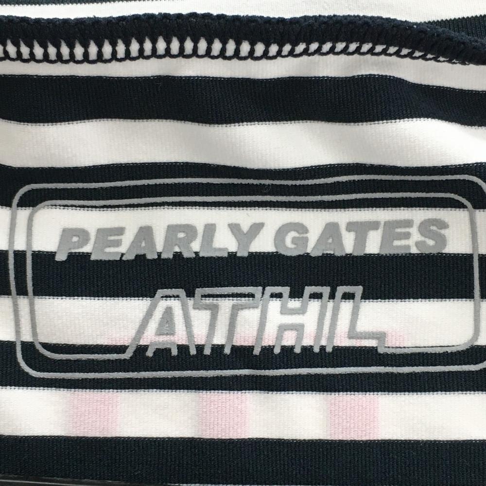 【美品】パーリーゲイツ インナーシャツ ネイビー×白 ボーダー Uネック レディース 0(S) ゴルフウェア PEARLY GATES