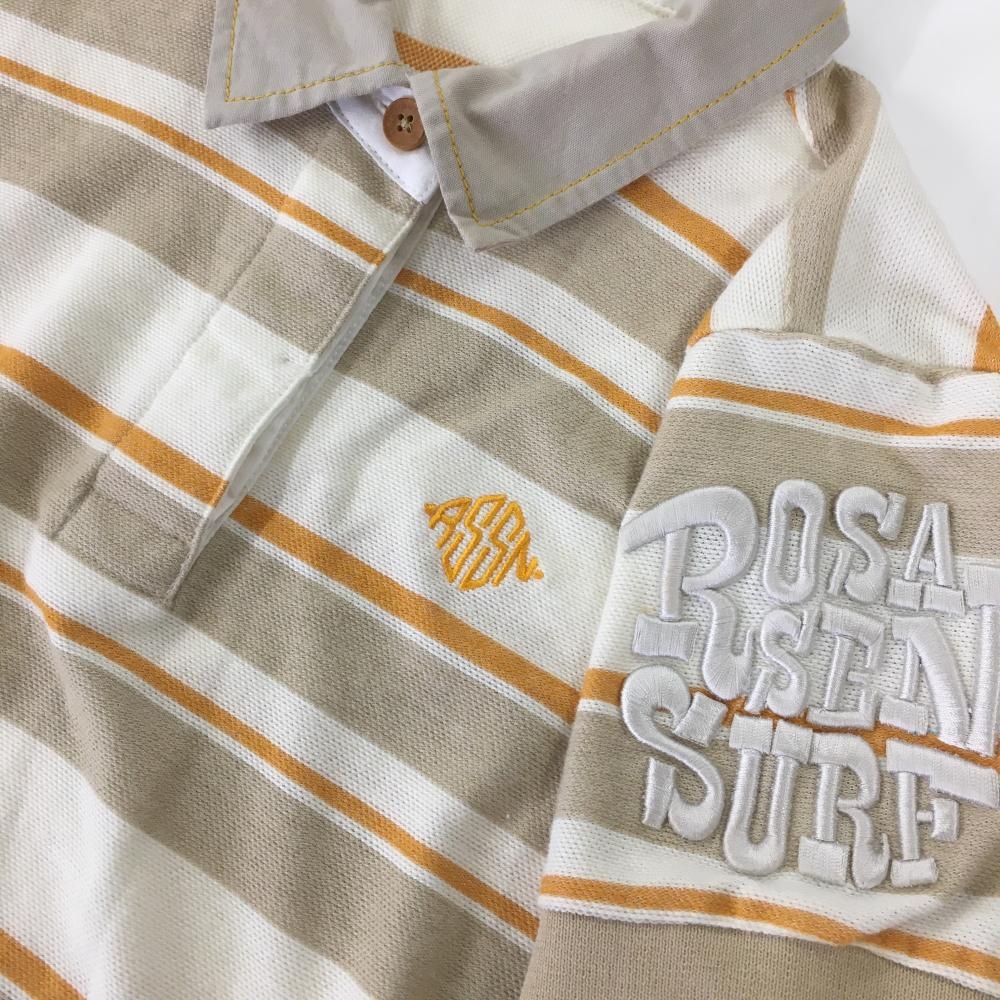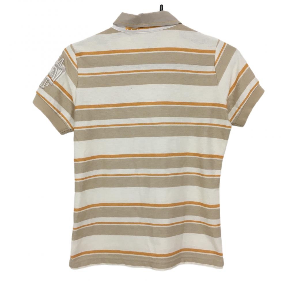 ロサーセン 半袖ポロシャツ ベージュ×オレンジ ボーダー レディース M ゴルフウェア Rosasen