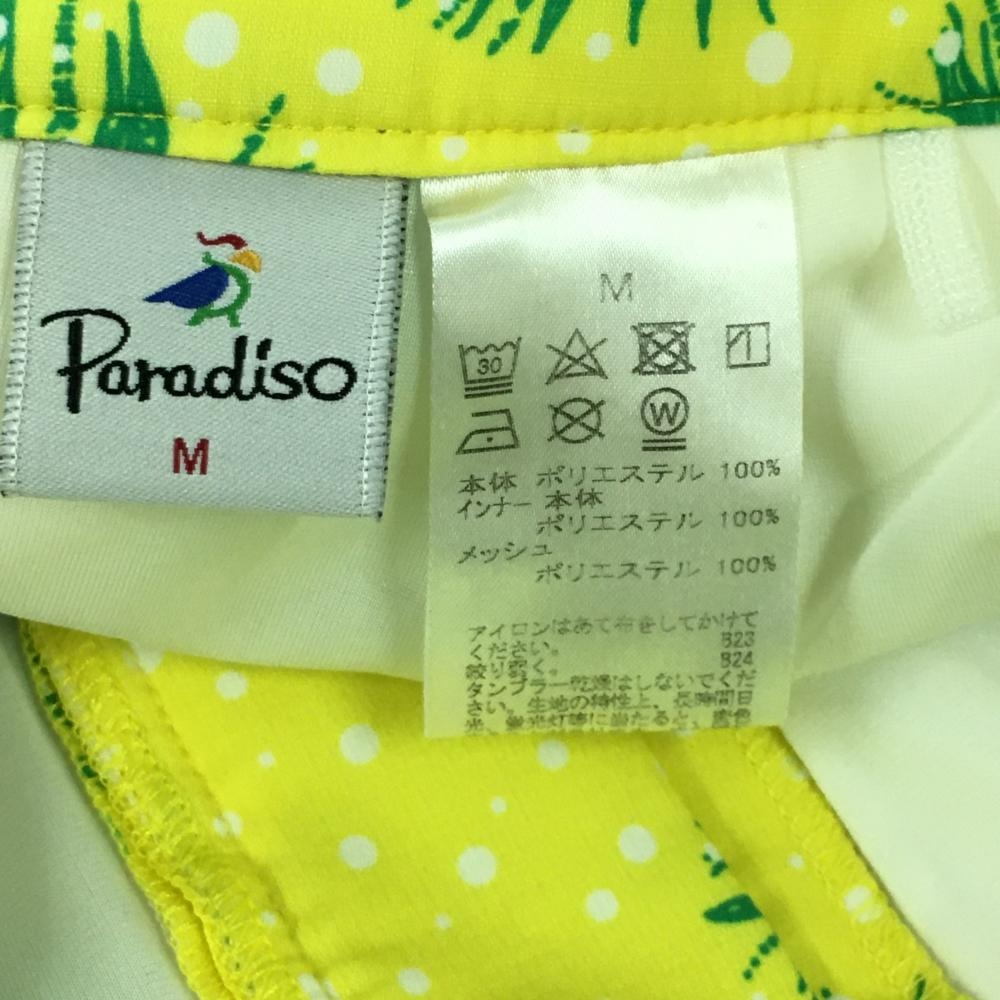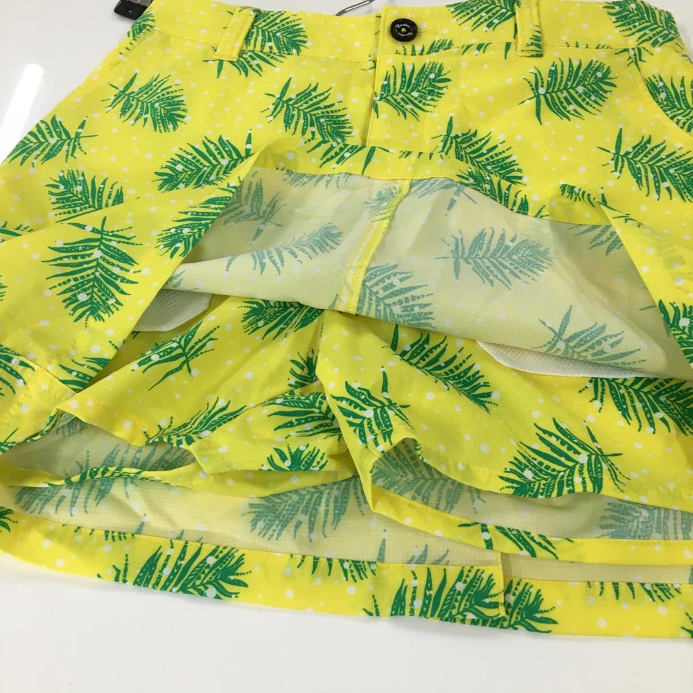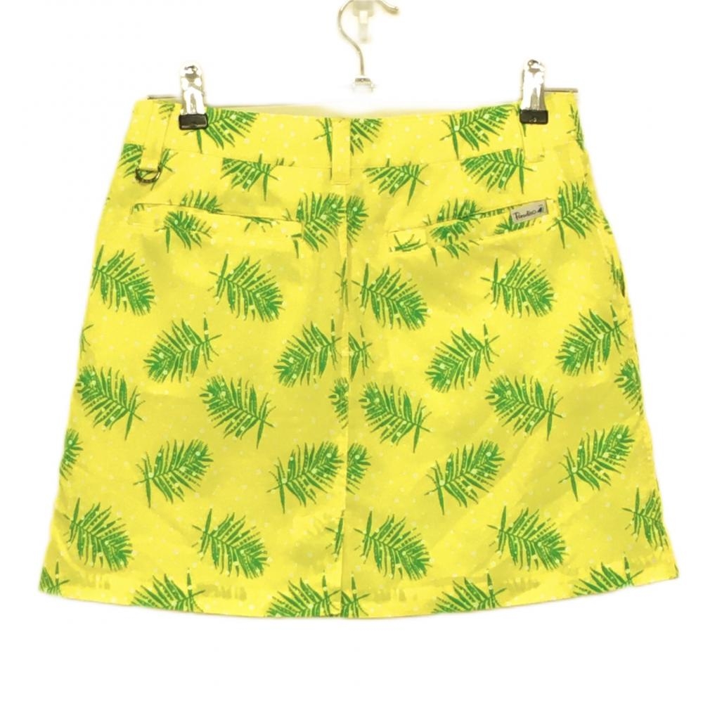 【美品】パラディーゾ スカート イエロー×グリーン リーフ柄 ドット柄 内側インナーパンツ レディース M ゴルフウェア Paradiso