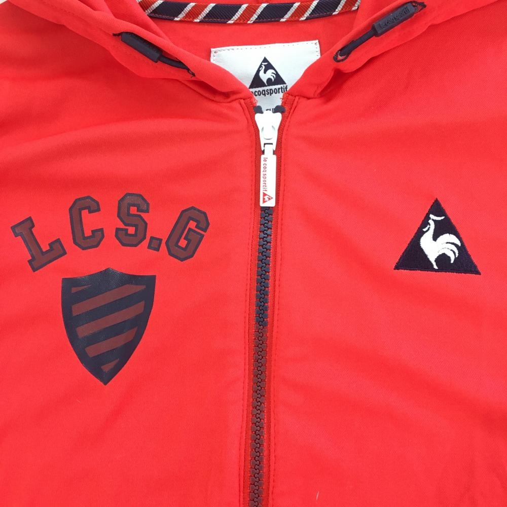 【美品】ルコック ジップパーカー レッド×ネイビー ロゴ刺しゅう 薄手 ブルゾン レディース L ゴルフウェア le coq sportif