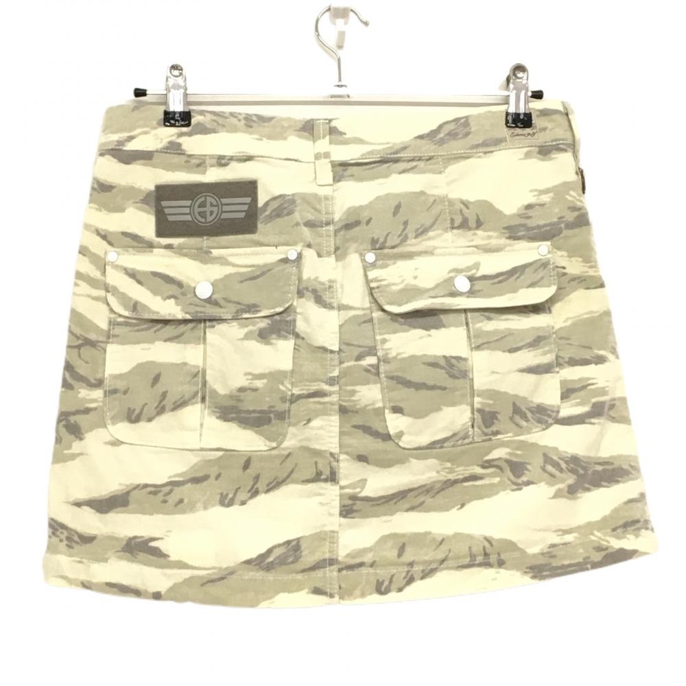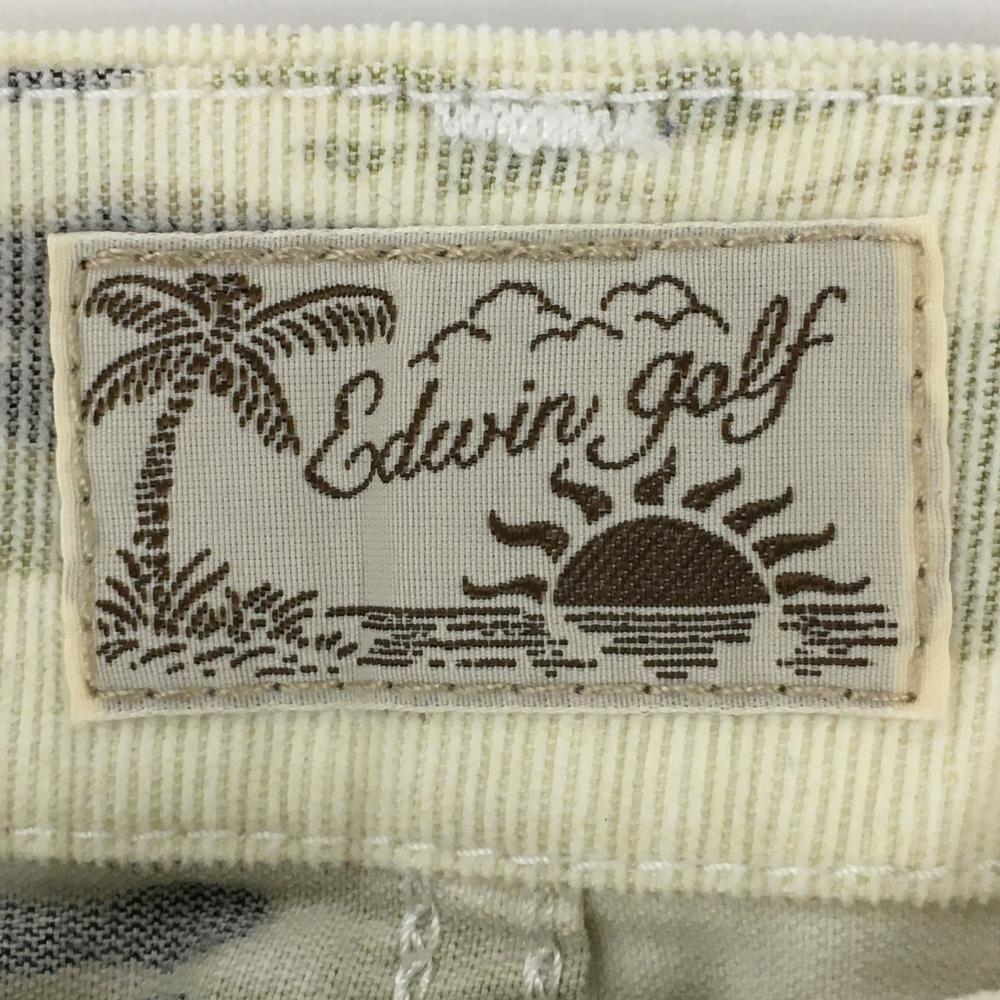 【美品】エドウィンゴルフ スカート アイボリー×ライトカーキ 総柄 コーデュロイ調 レディース L ゴルフウェア EDWIN GOLF