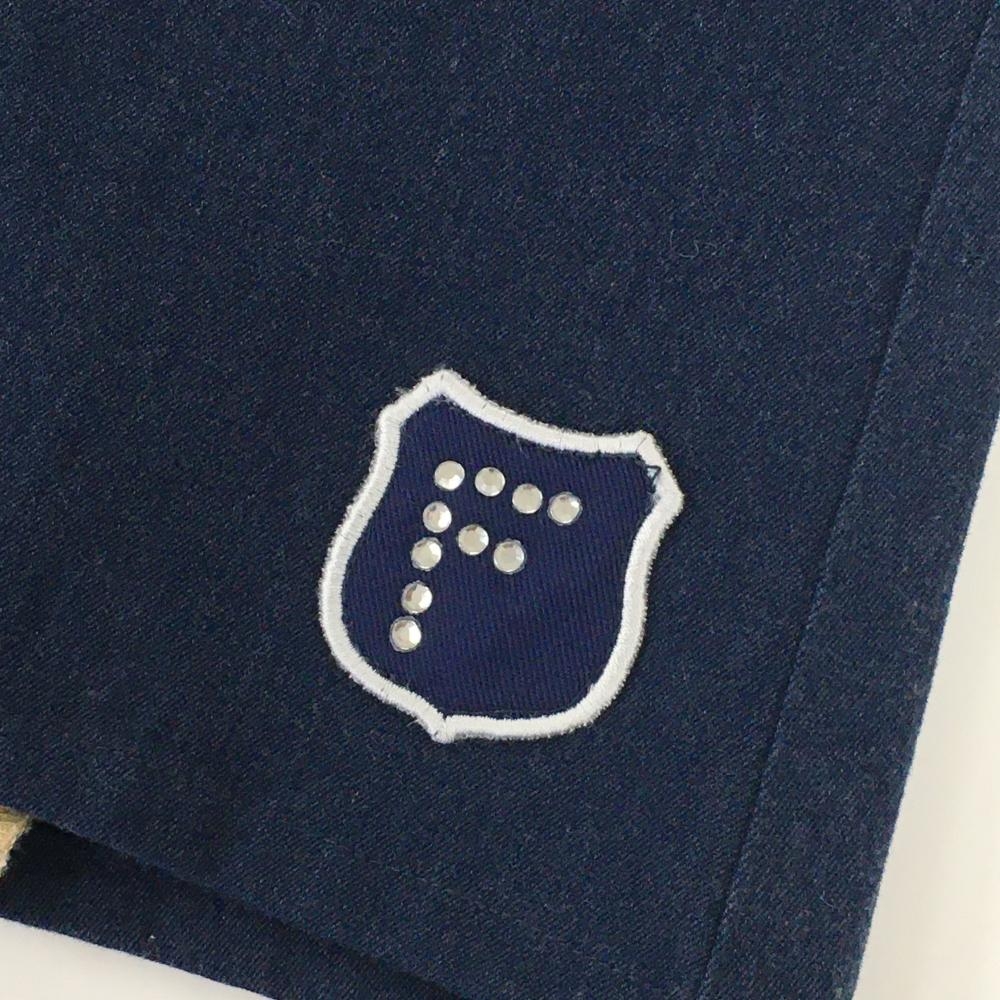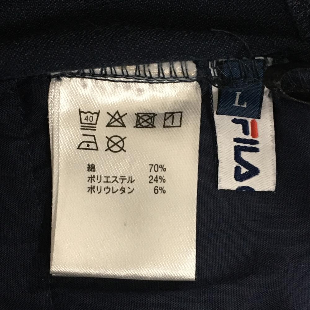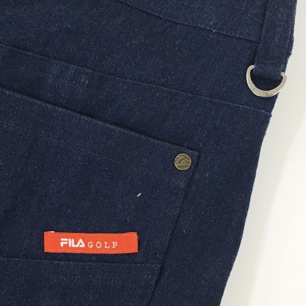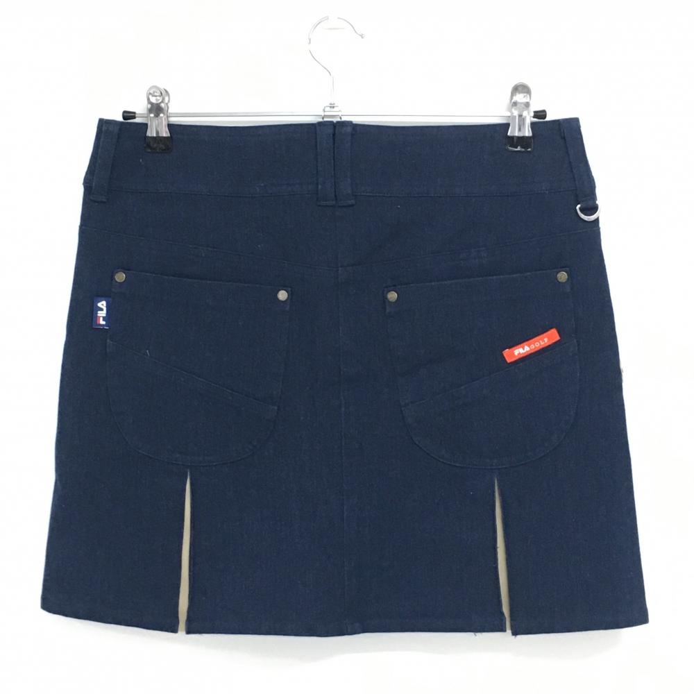 【超美品】フィラゴルフ スカート ネイビー×ベージュ デニム調 ティー装着可 ラインストーン レディース L ゴルフウェア FILA GOLF