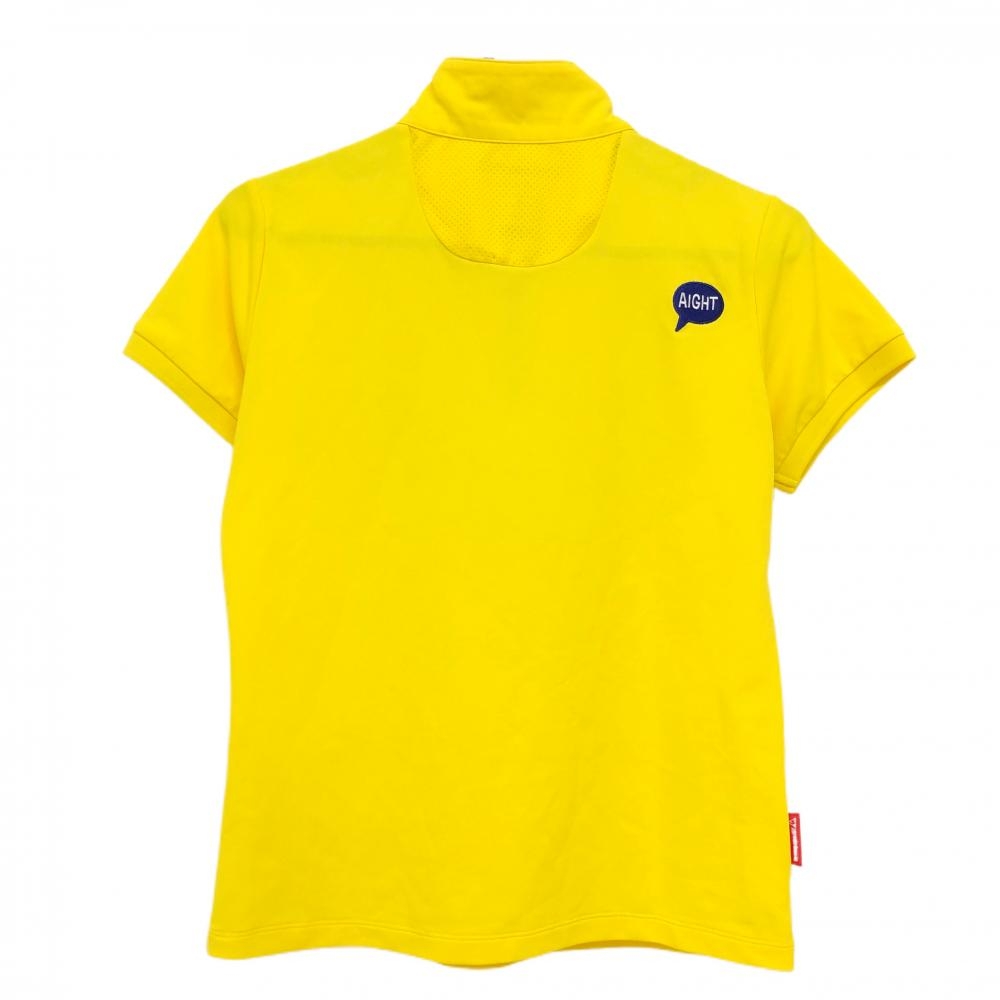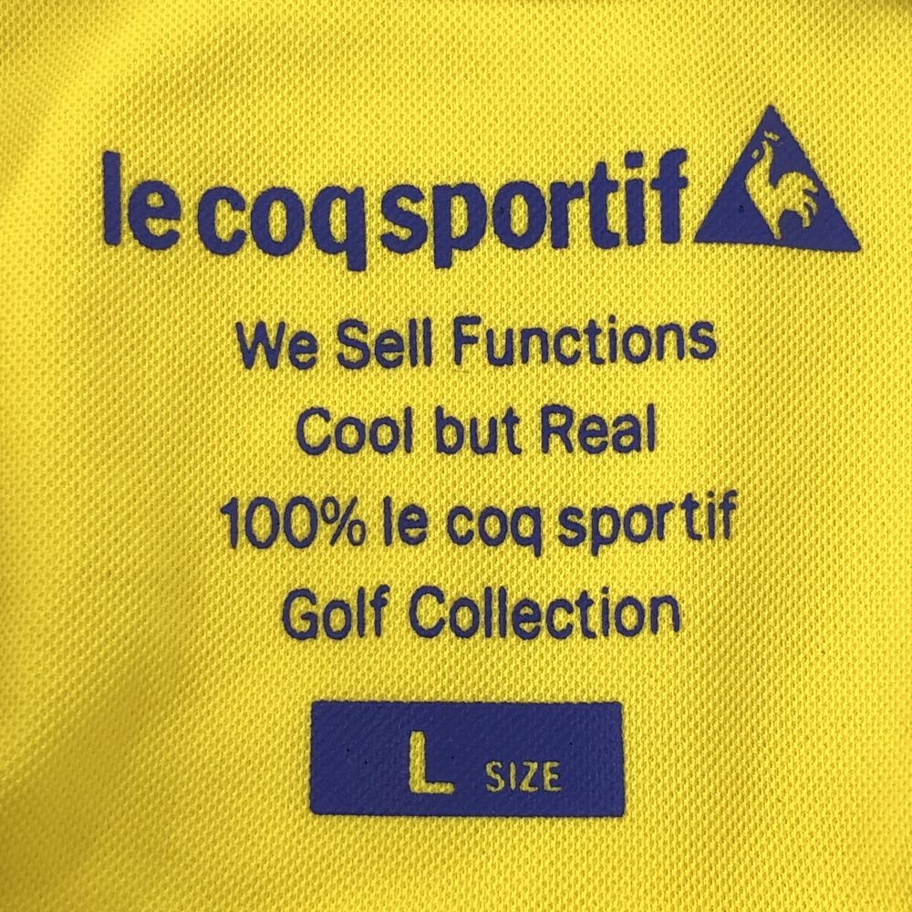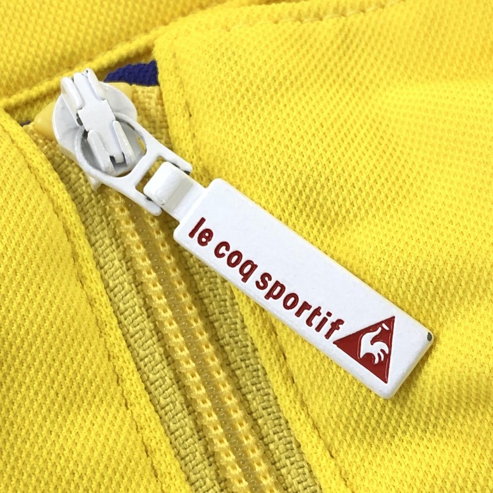 【超美品】ルコック 半袖ハイネックシャツ イエロー×パープル ハーフジップ フロント英字 レディース L ゴルフウェア le coq sportif