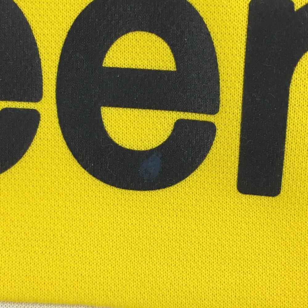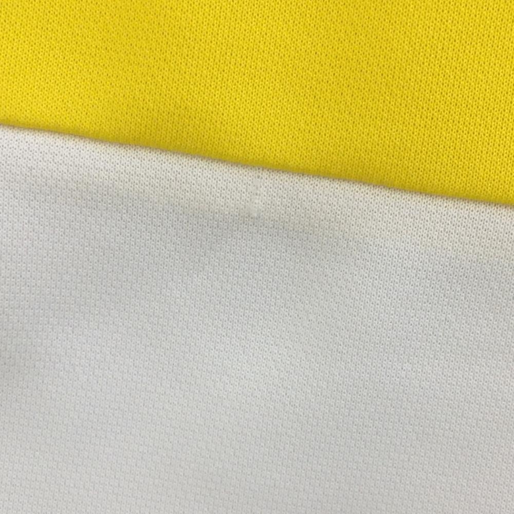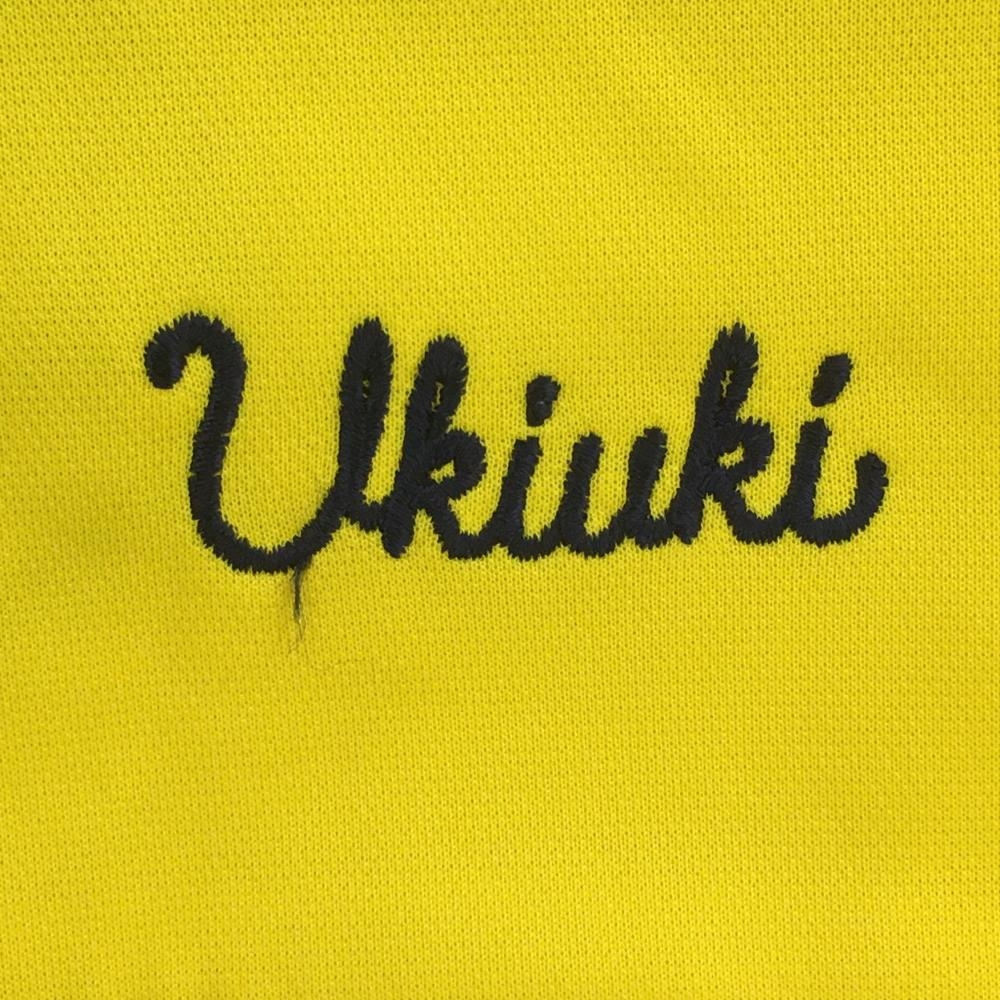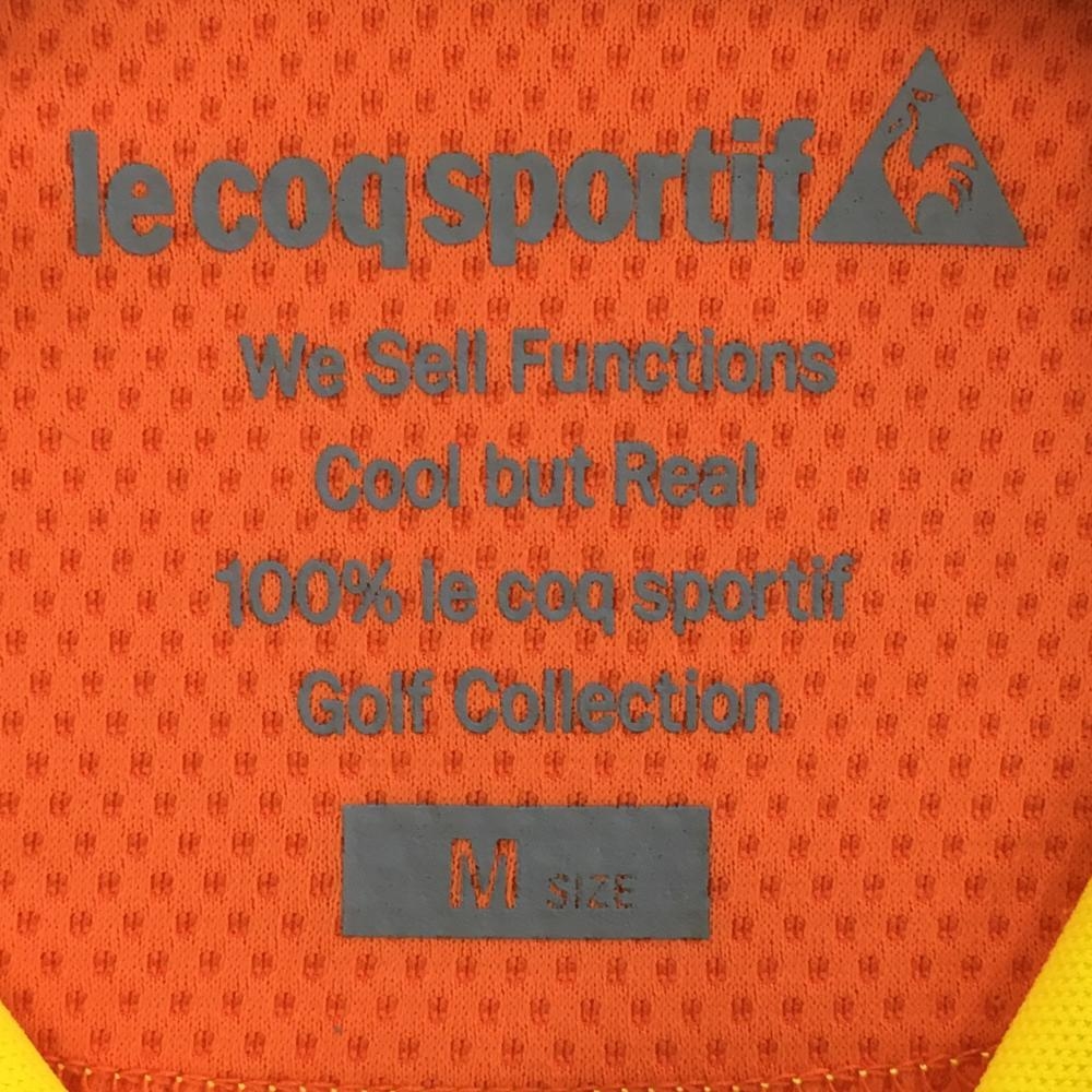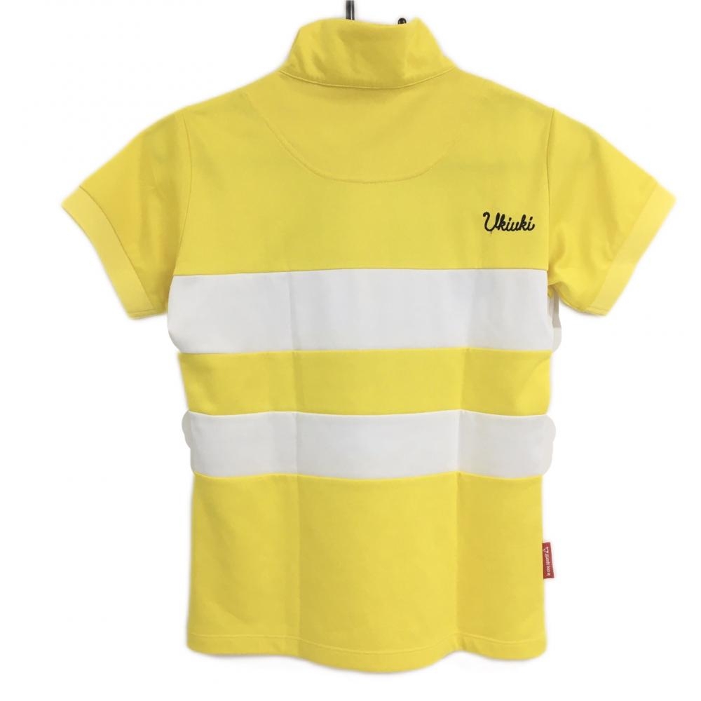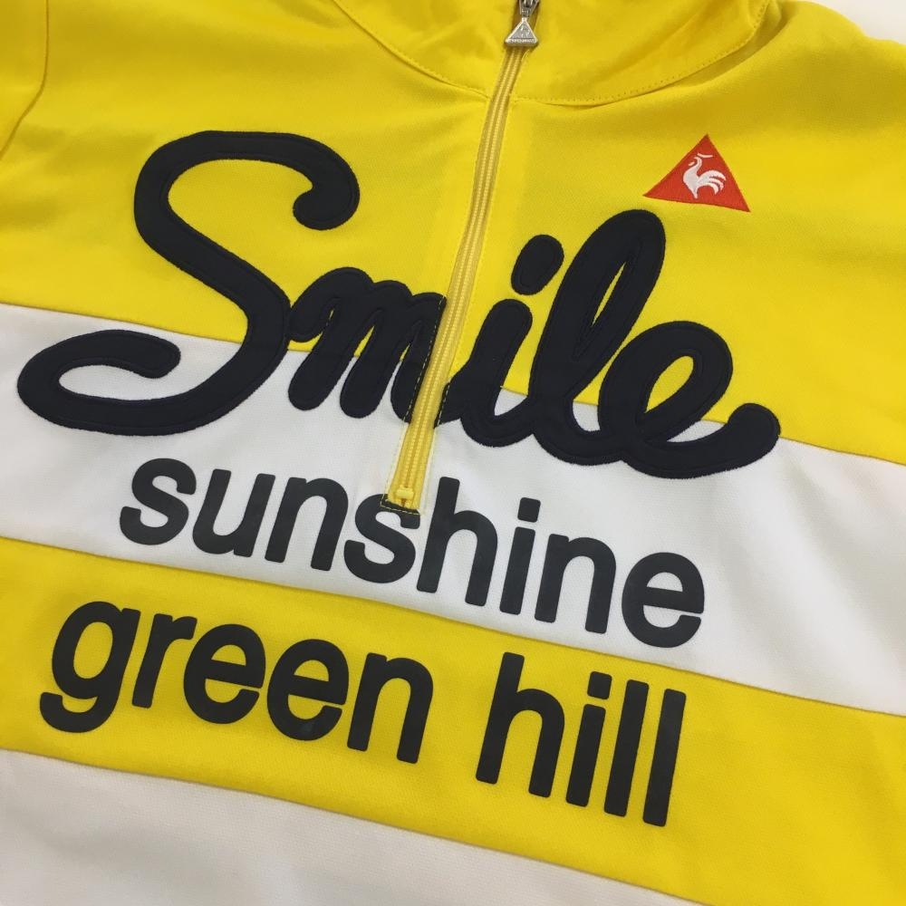 【美品】ルコック 半袖ハイネックシャツ イエロー×白 ハーフジップ ボーダー調 レディース M ゴルフウェア le coq sportif
