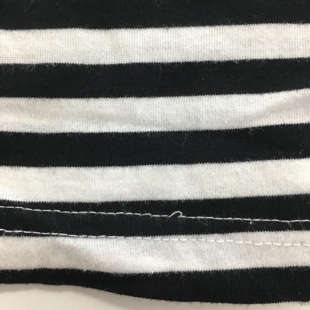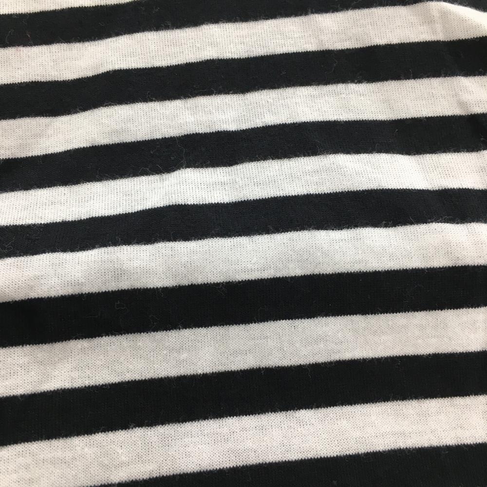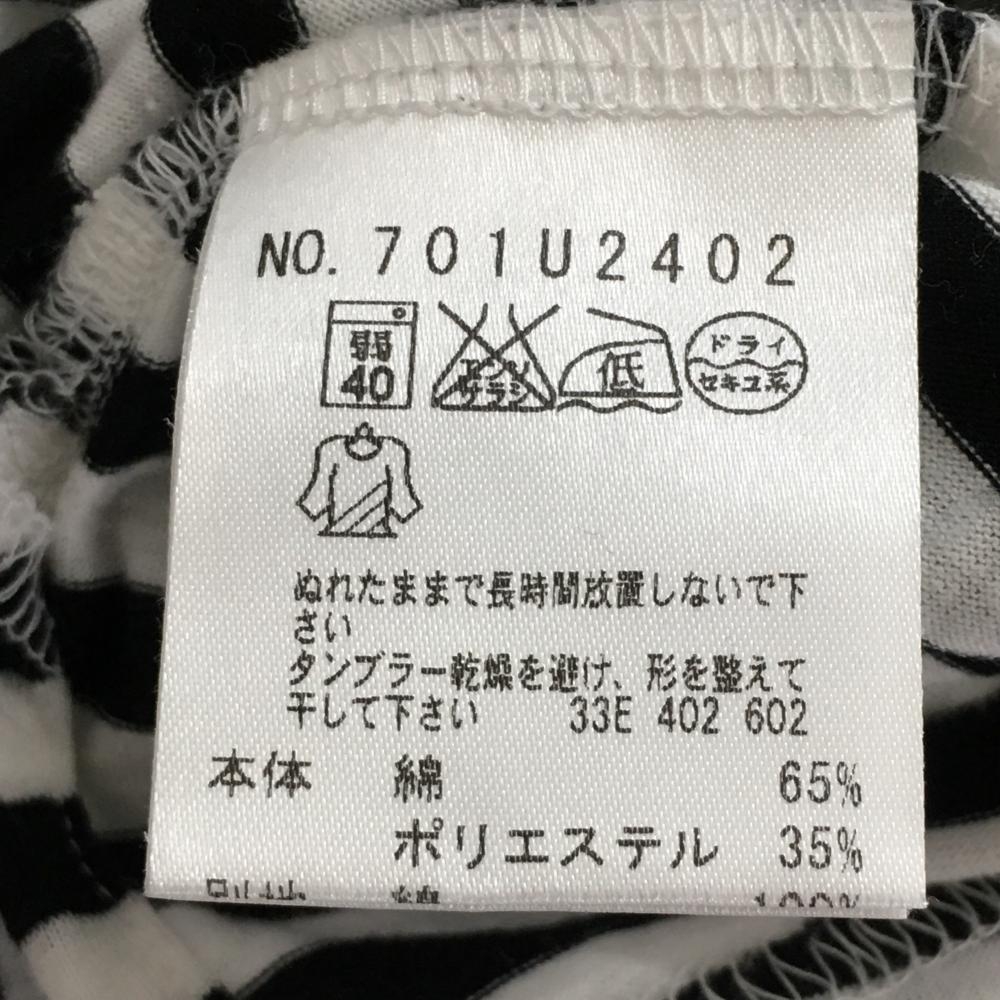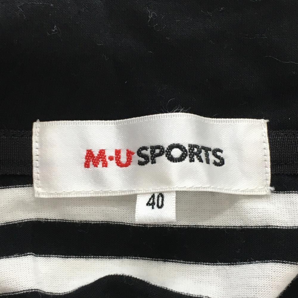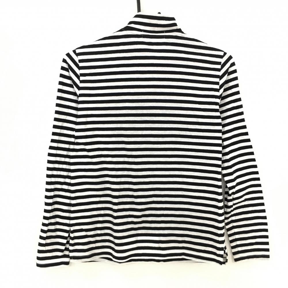【美品】MUスポーツ 長袖ハイネックシャツ 白×黒 ボーダー ハーフジップ フロッキープリント レディース 40(M) ゴルフウェア M・U SPORTS