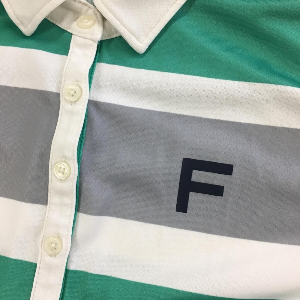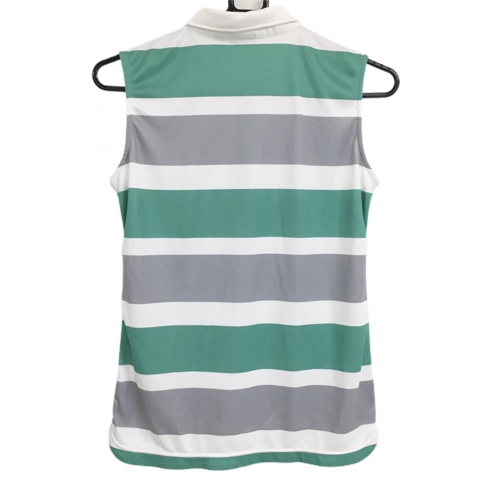 【超美品】フィドラ ノースリーブポロシャツ グリーン×グレー ボーダー レディース M ゴルフウェア FIDRA