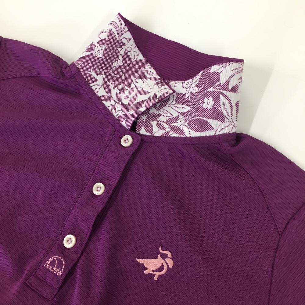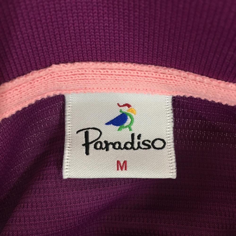 【超美品】パラディーゾ 半袖ポロシャツ パープル×ピンク 織生地 ロゴ刺しゅう 襟裏柄 レディース M ゴルフウェア Paradiso