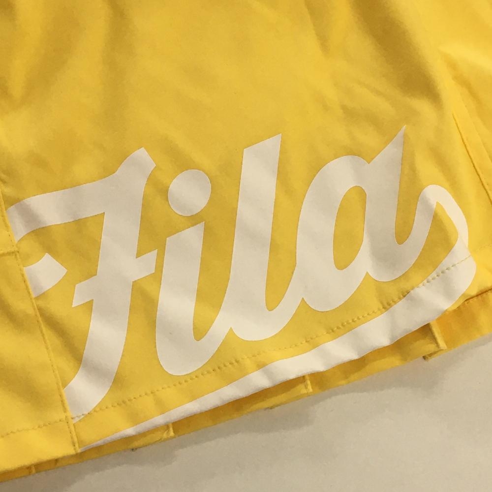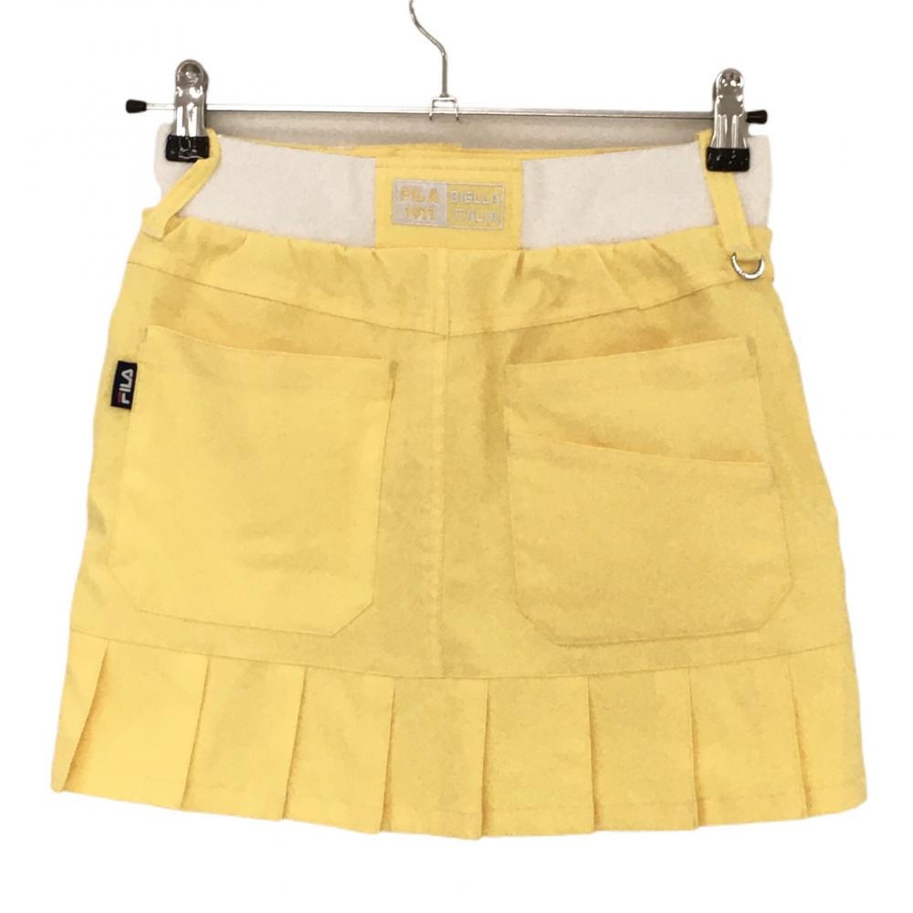 【超美品】フィラゴルフ スカート イエロー×白 後ろ裾プリーツ 後ろウエストゴム インナーパンツ付 レディース S ゴルフウェア FILA GOLF