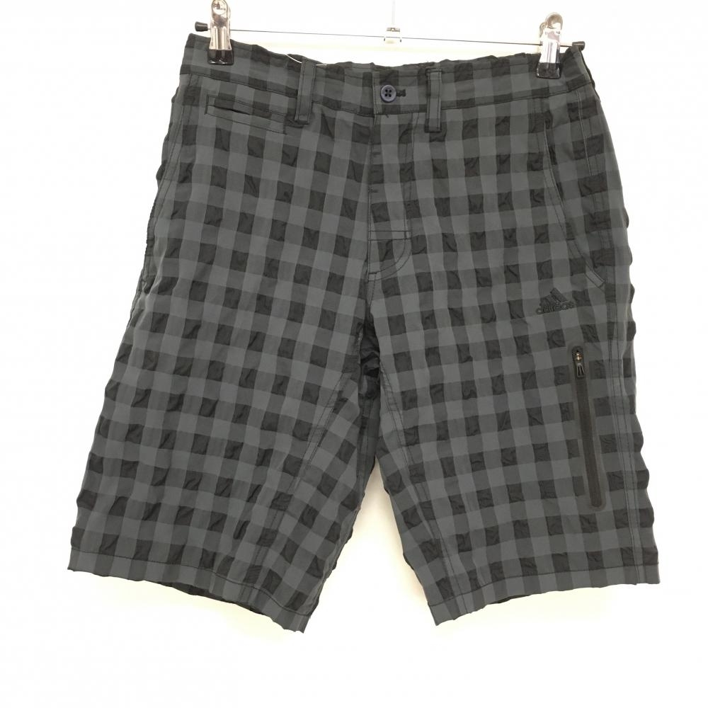 【美品】アディダス ハーフパンツ グレー×黒 チェック柄 凸凹生地 メンズ M ゴルフウェア adidas
