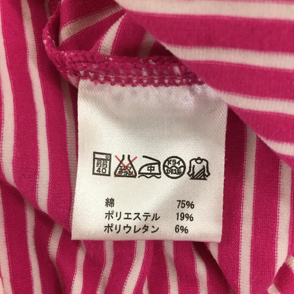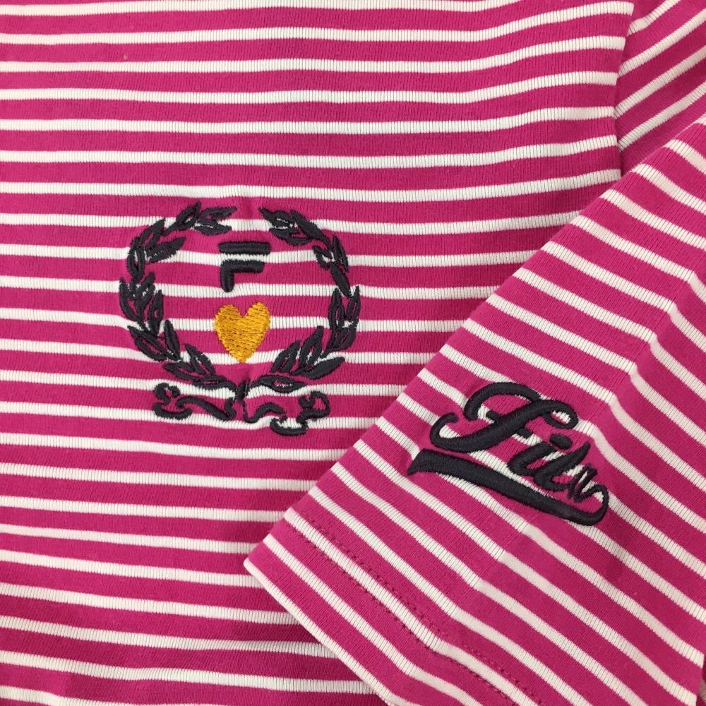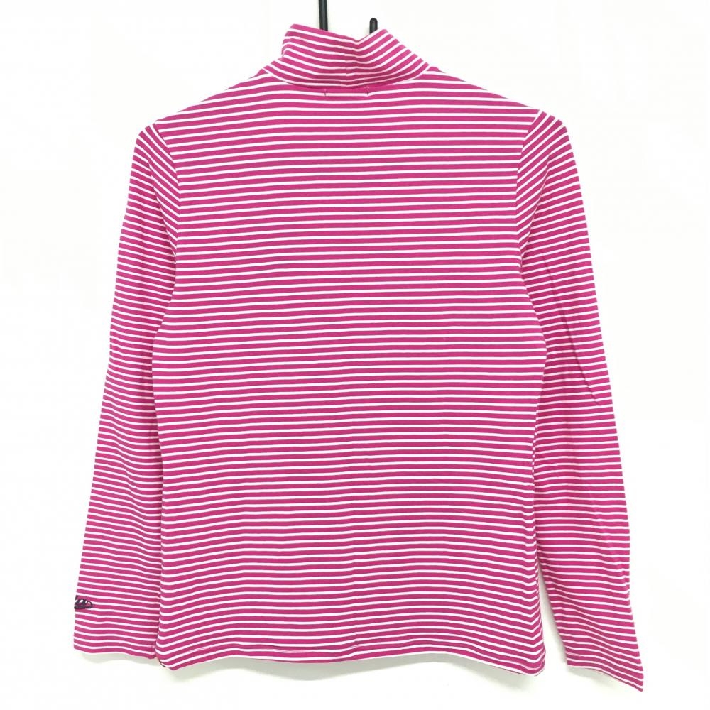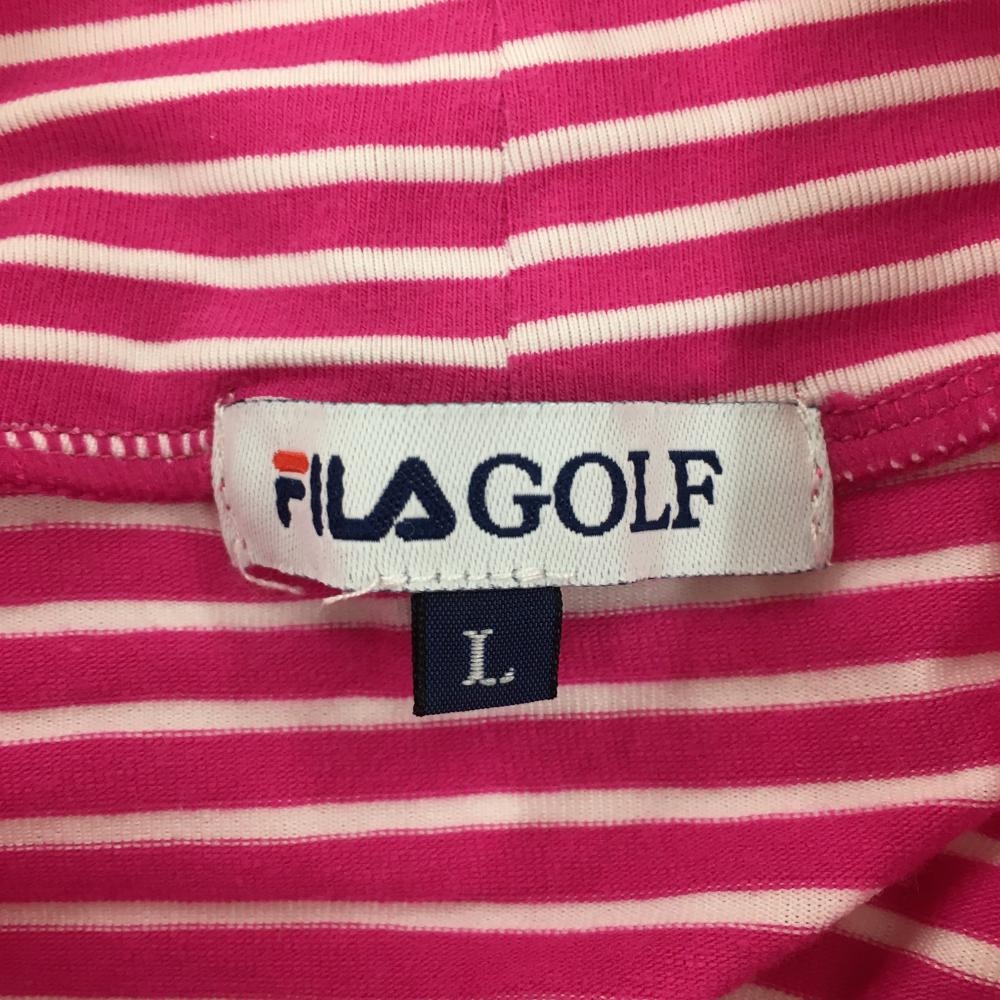 【美品】フィラゴルフ 長袖ハイネックシャツ ピンク×白 ボーダー柄 ロゴ刺しゅう レディース L ゴルフウェア FILA GOLF