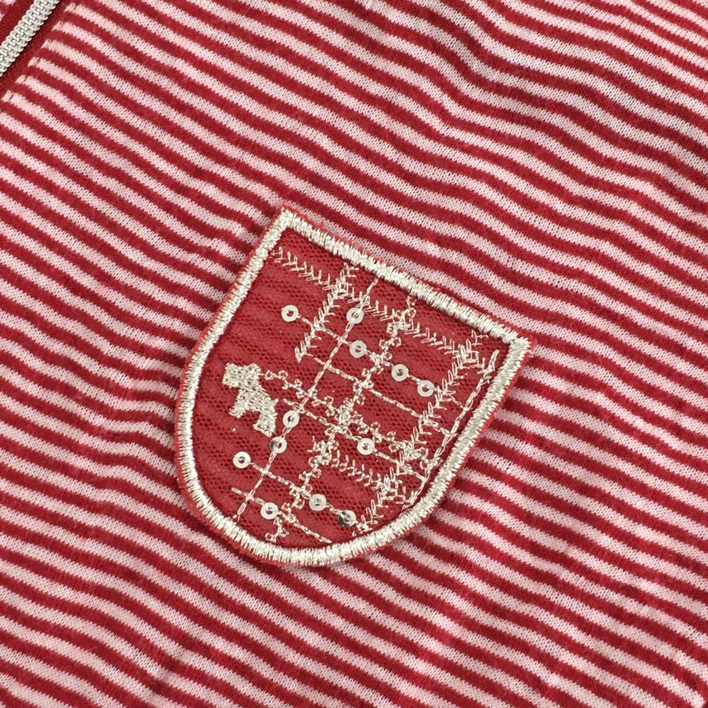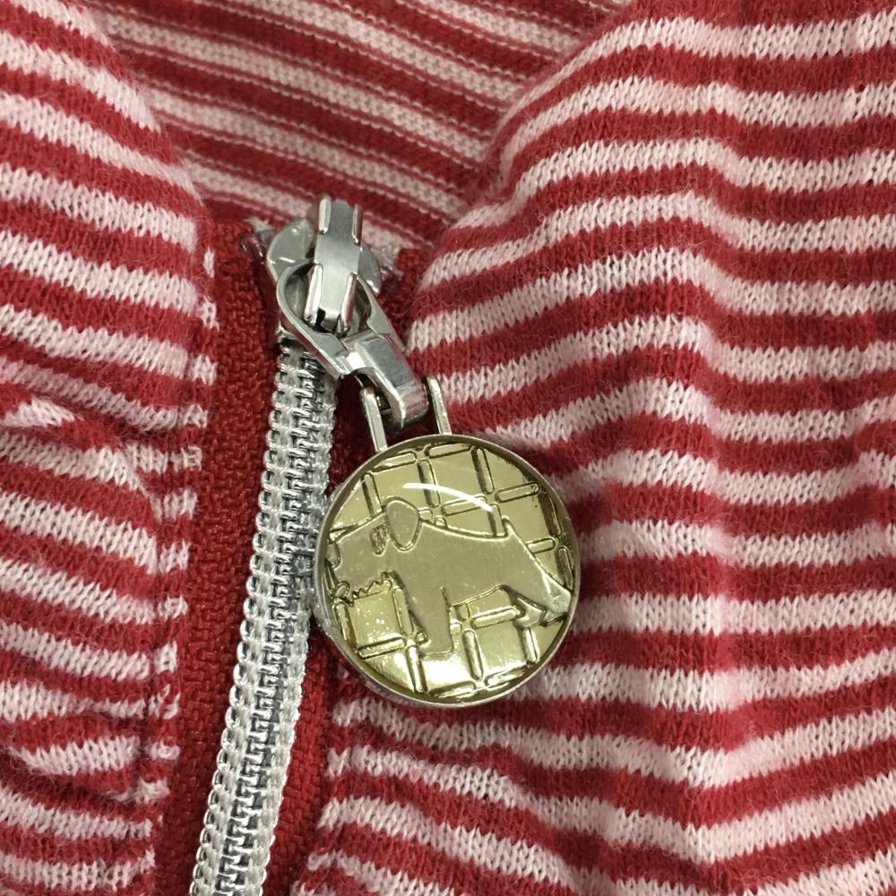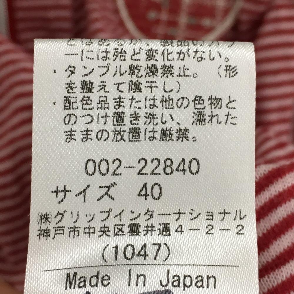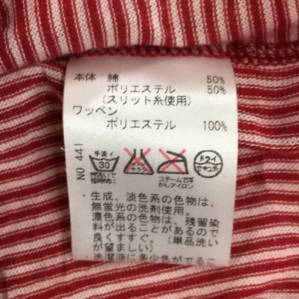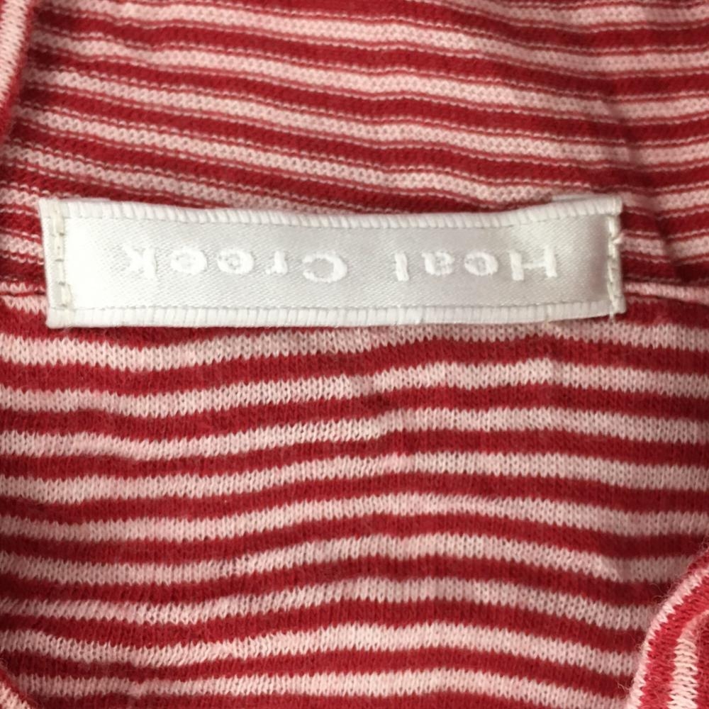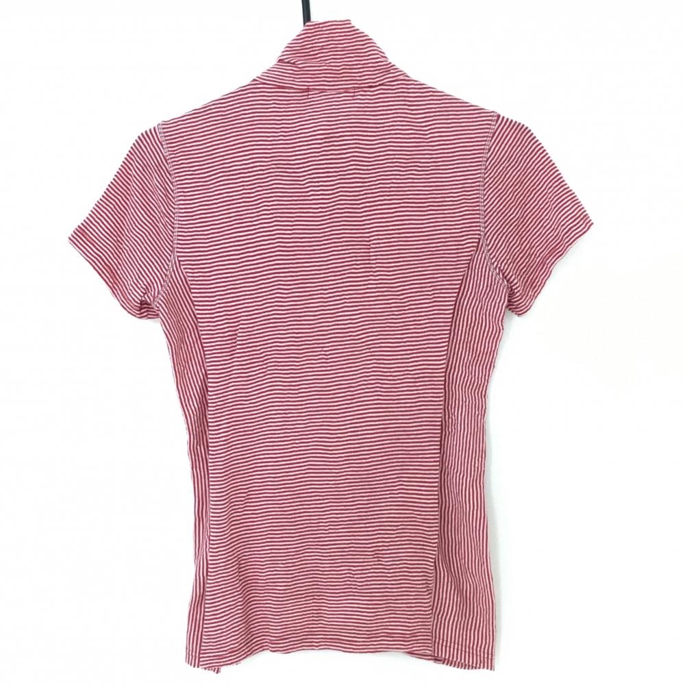 【美品】ヒールクリーク 半袖ハイネックシャツ レッド×白 ボーダー ハーフジップ ワッペン レディース 40(M) ゴルフウェア Heal Creek