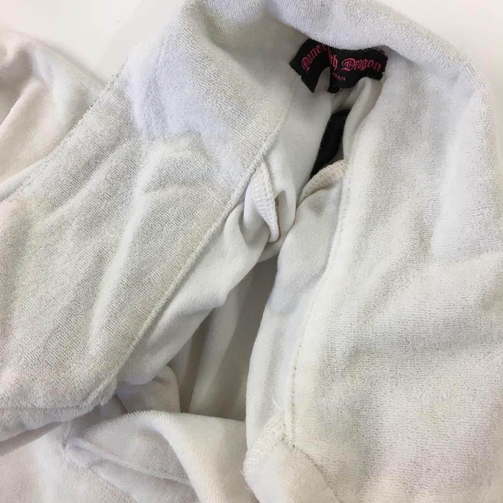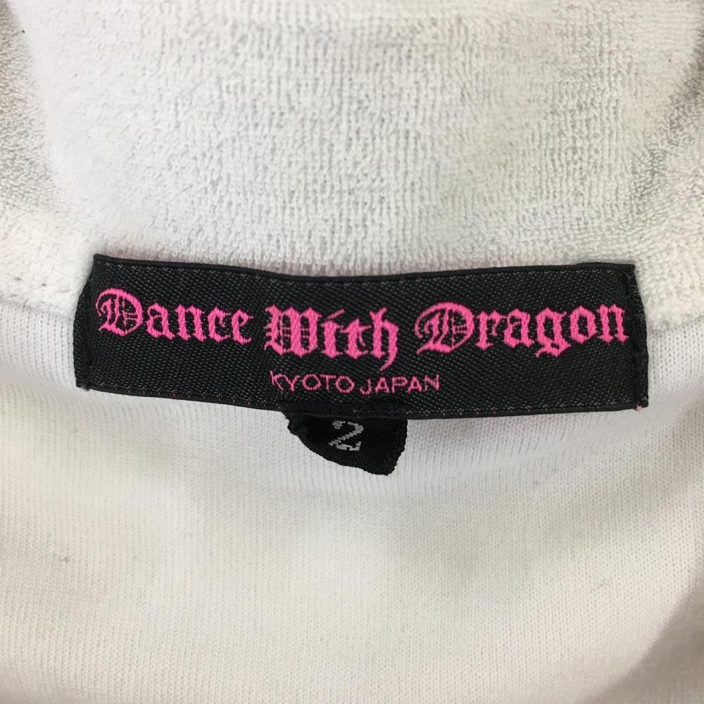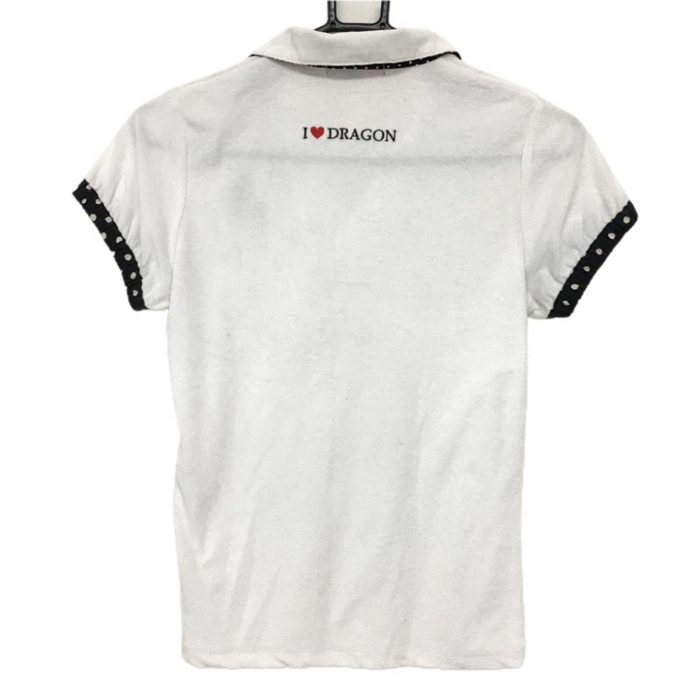 ダンスウィズドラゴン 半袖スキッパーシャツ 白×黒 パイル地 スカル 袖口ドット レディース 2(M) ゴルフウェア Dance With Dragon