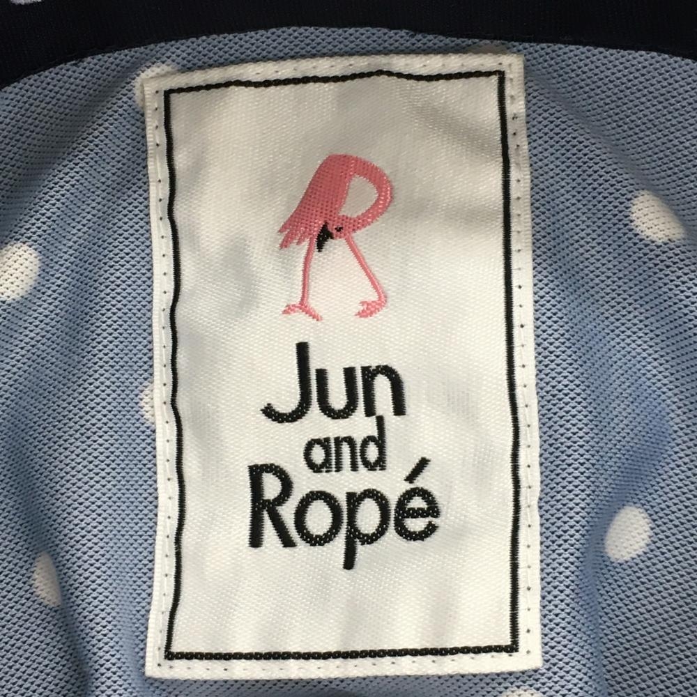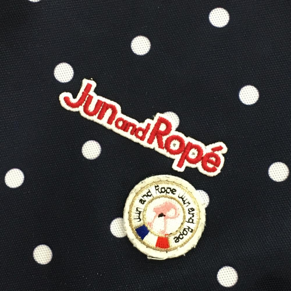 【美品】ジュンアンドロペ ジャケットブルゾン ネイビー×白 ドット柄 ロゴワッペン レディース L ゴルフウェア JUN&ROPE