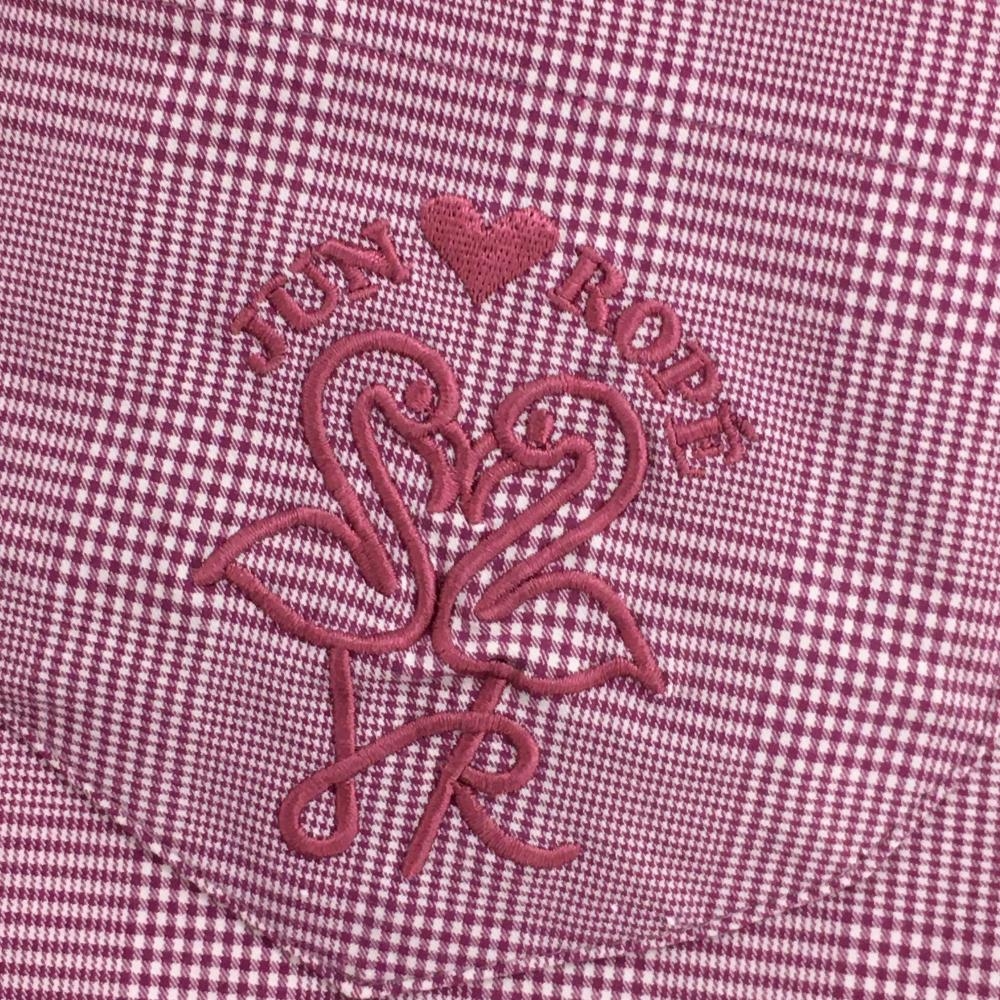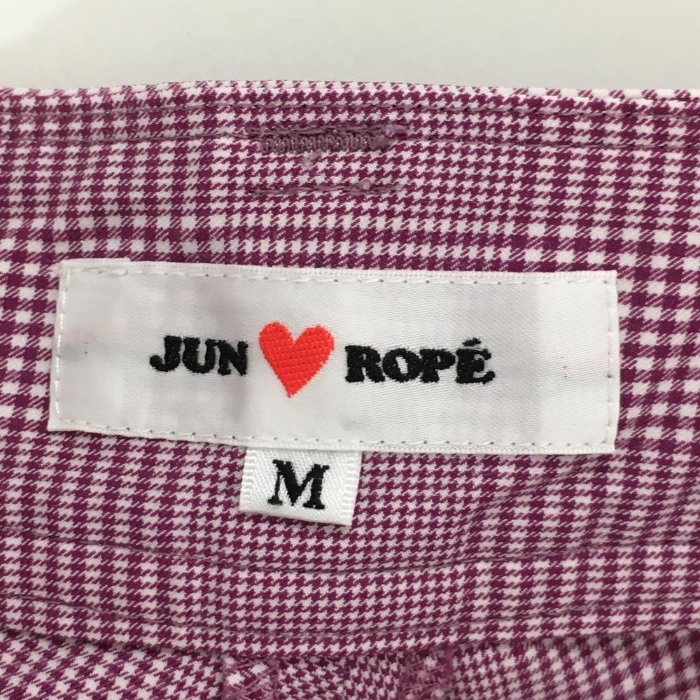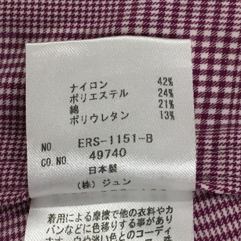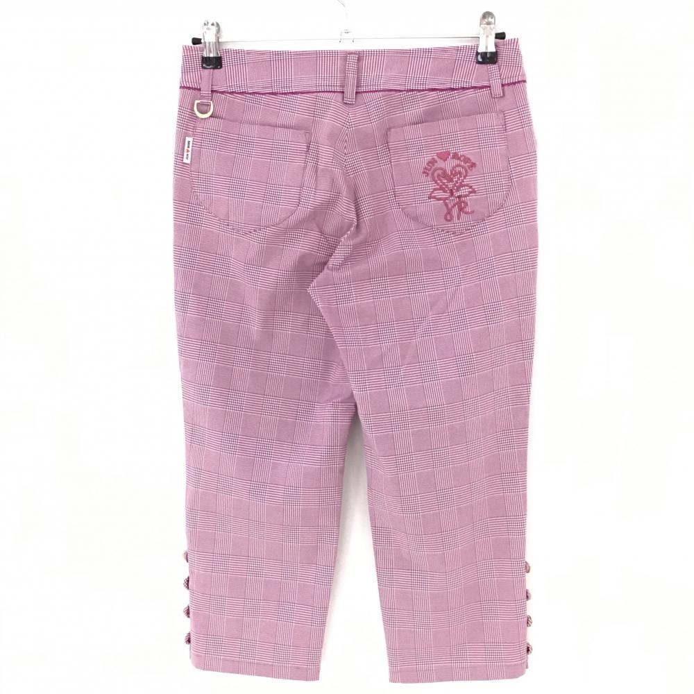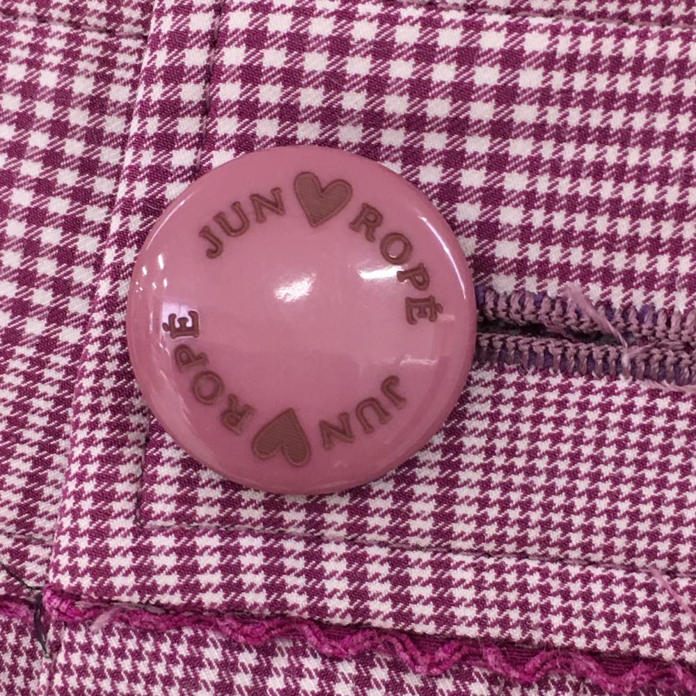 【超美品】ジュンアンドロペ 半端丈パンツ パープル×白 グレンチェック 裾ボタン ストレッチ レディース M ゴルフウェア JUN&ROPE